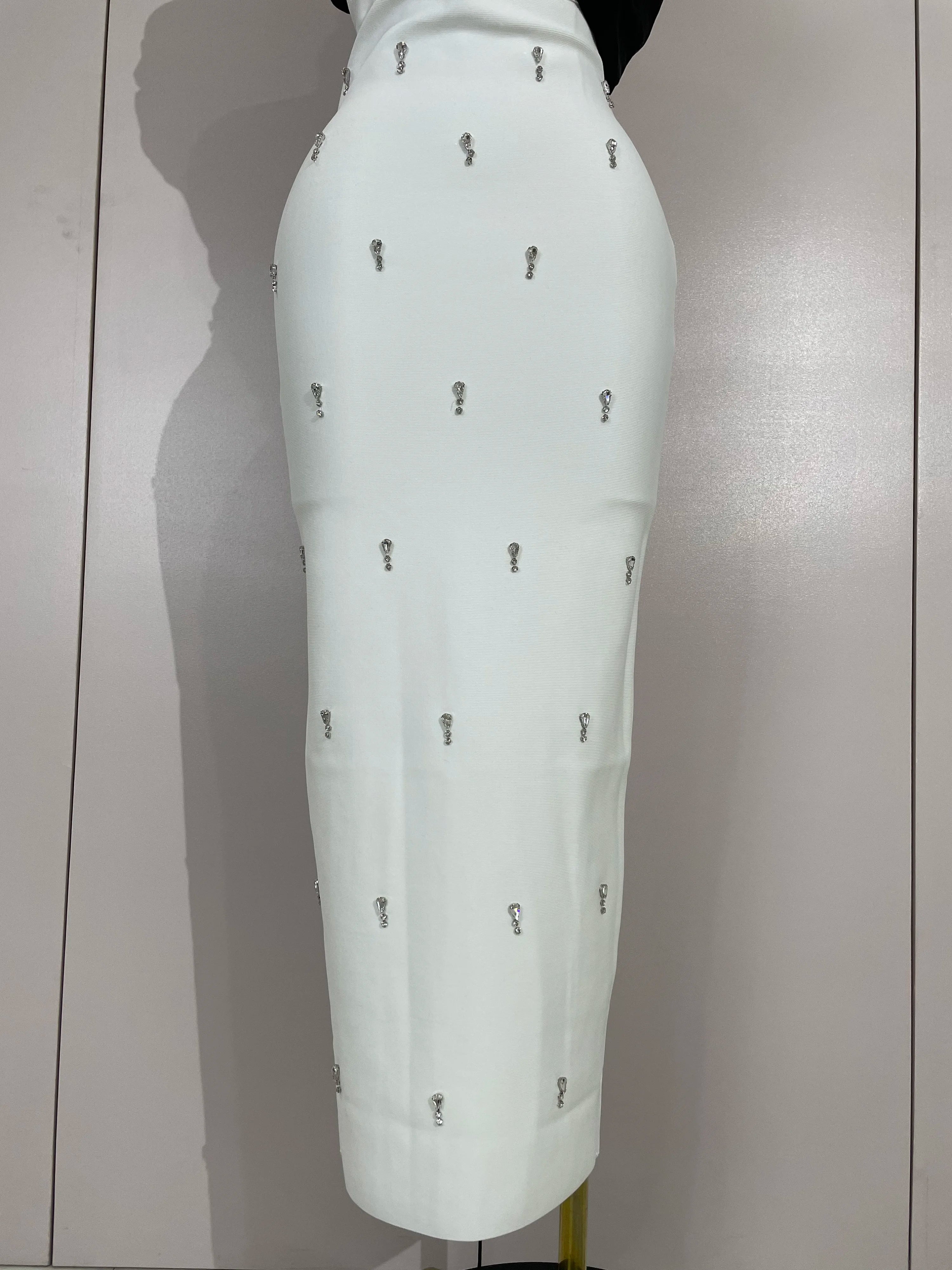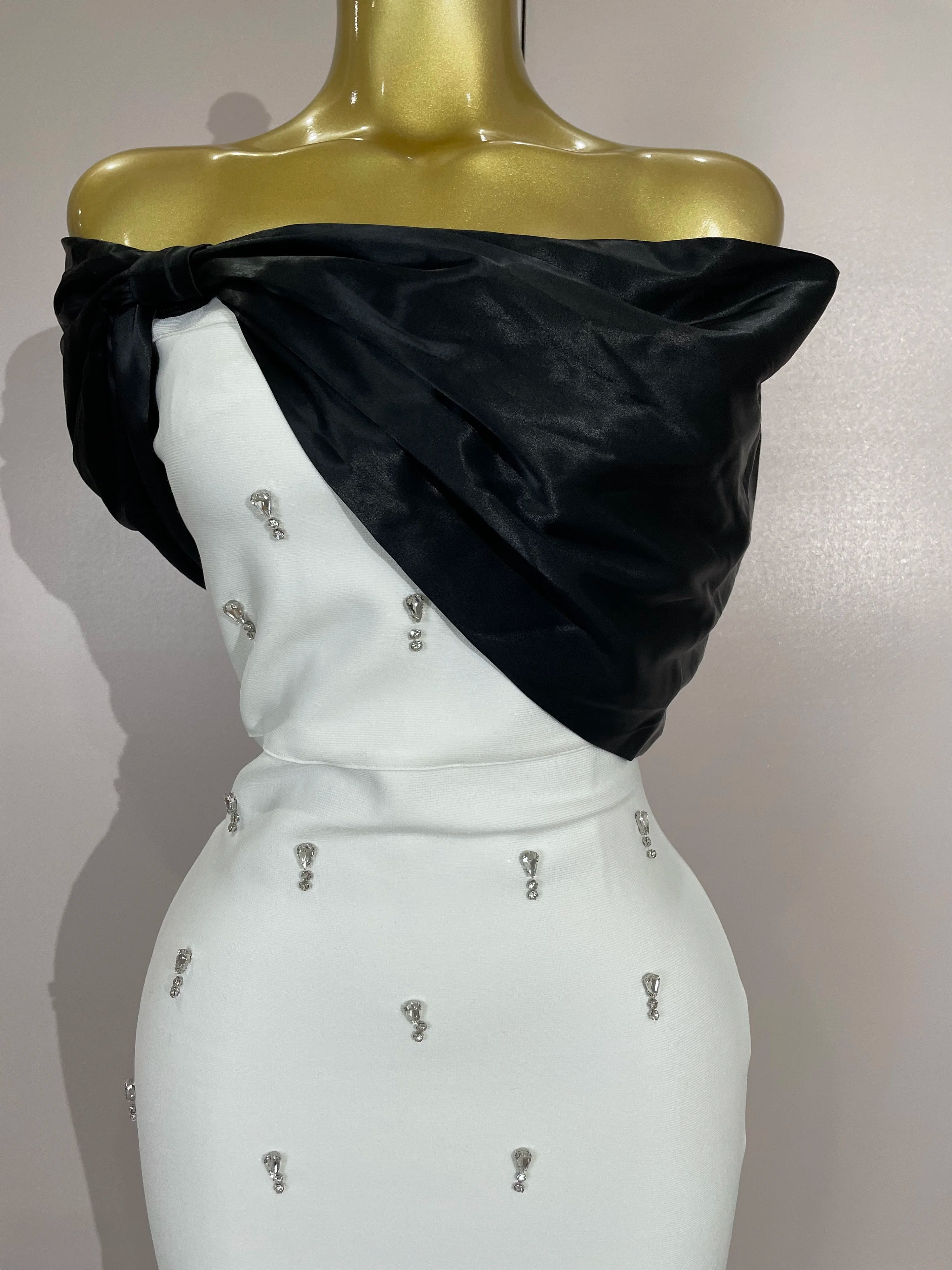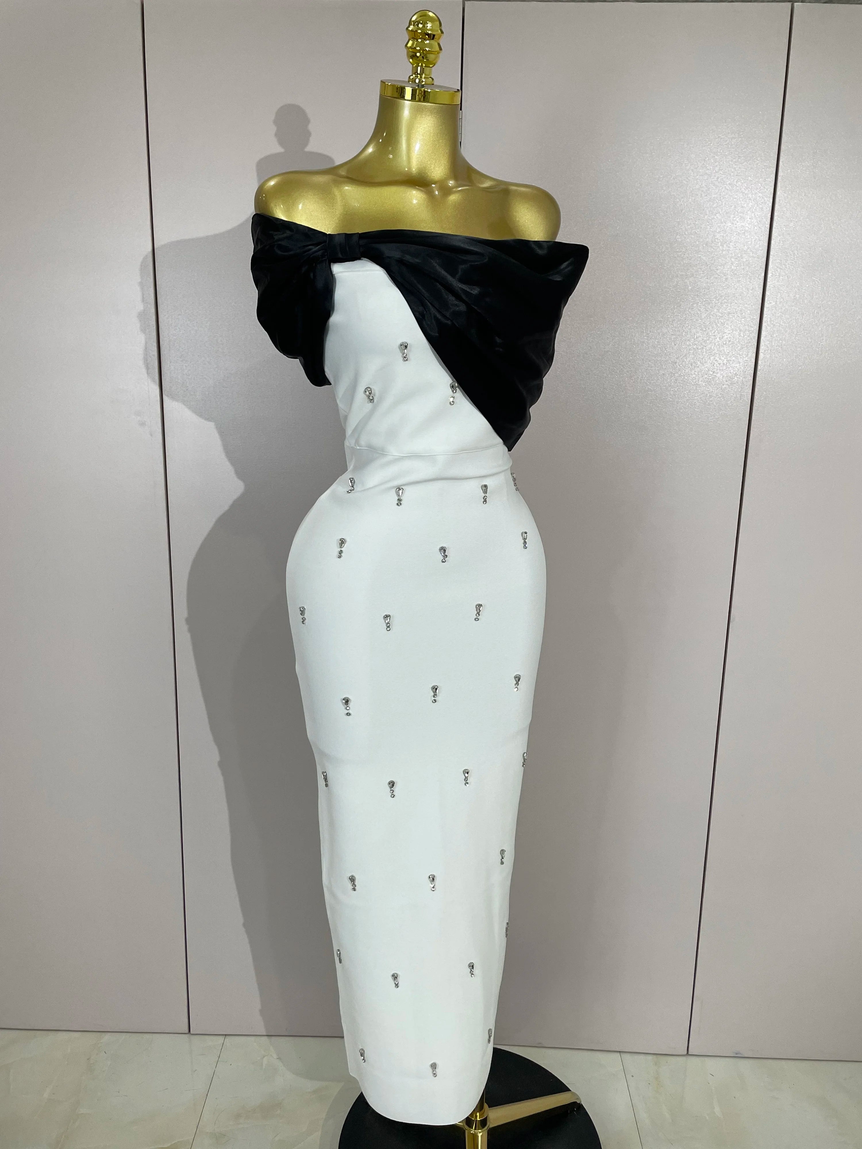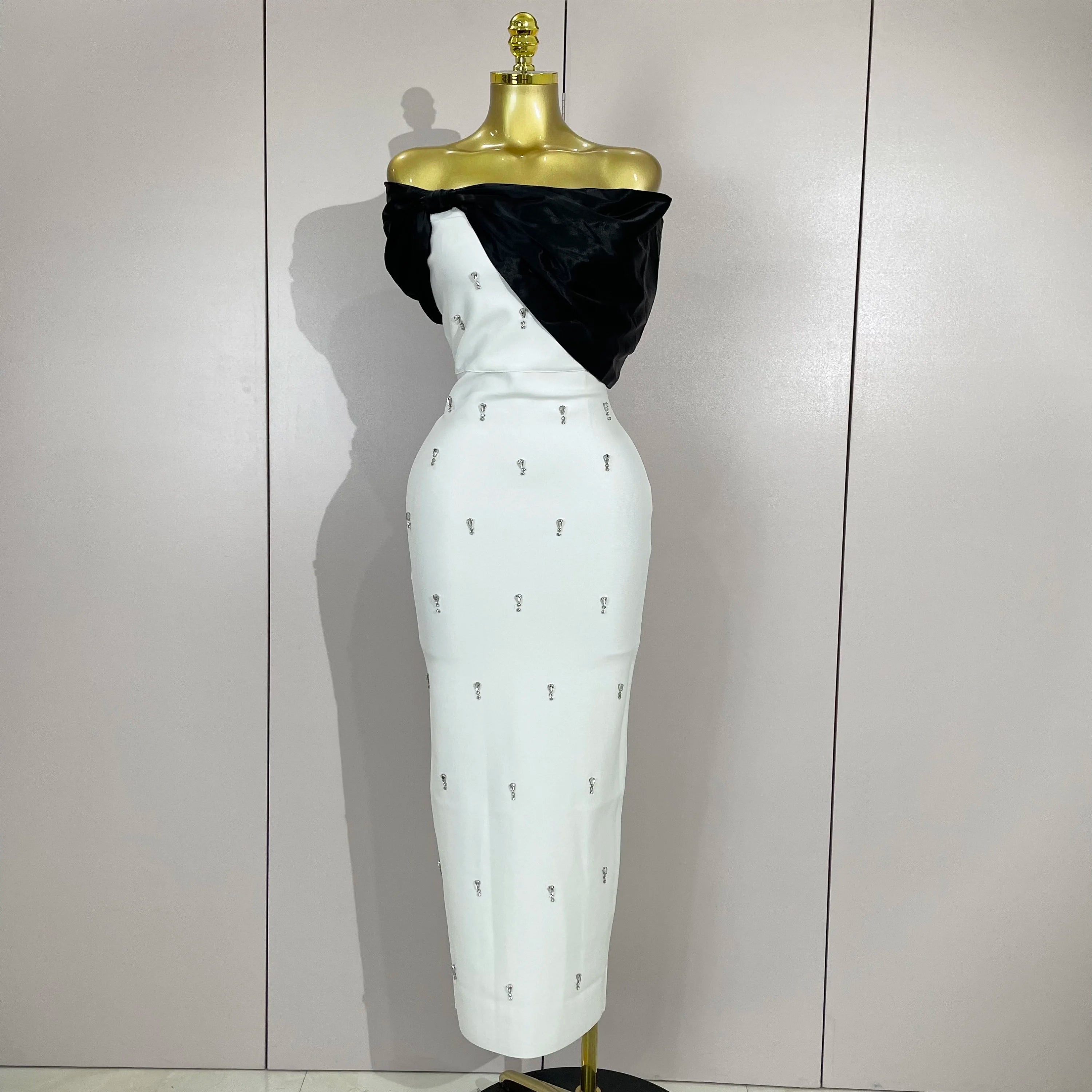 Samantha Elegant Sexy Off Shoulder Ruched Beaded Patchwork Bodycon Long Bandage Dress