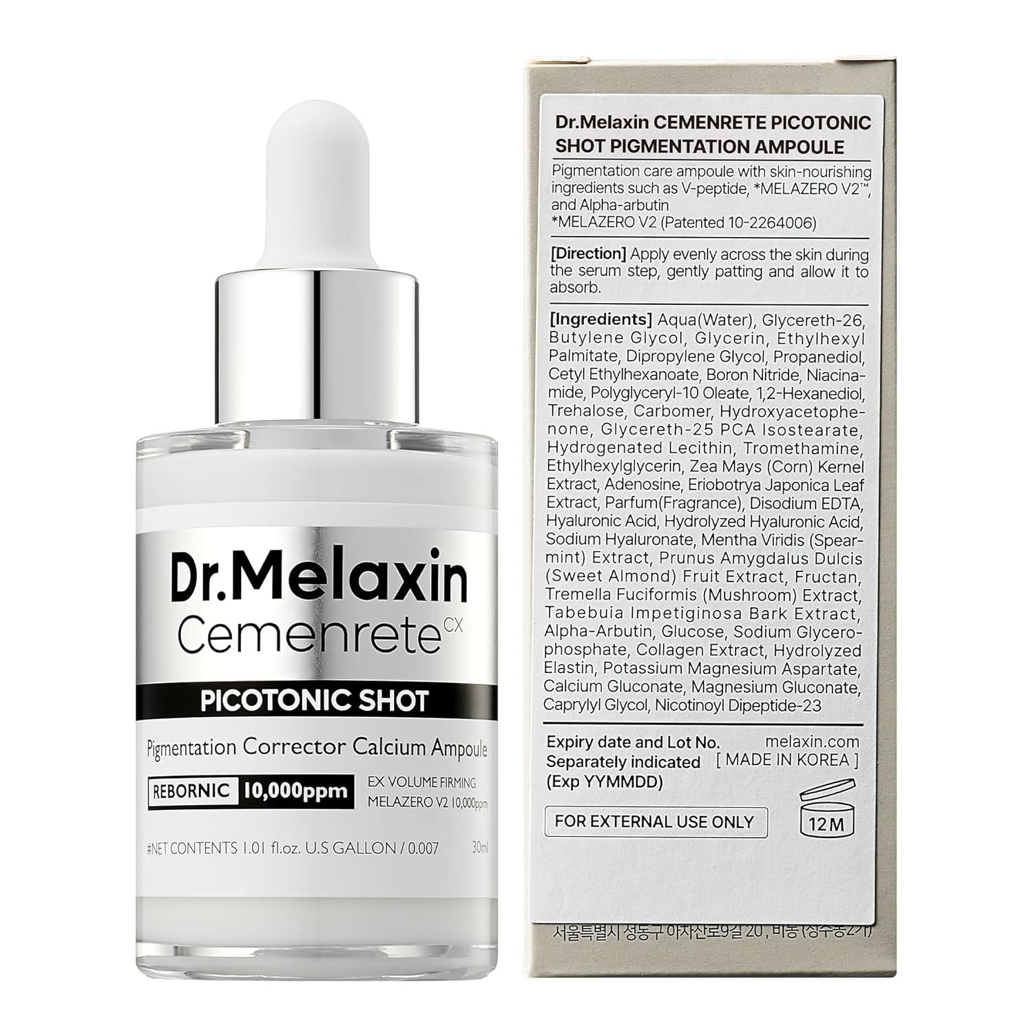 Dr.Melaxin Cemenrete Picotonic Shot Calcium Serum for Firming Density collagen serum Even Skin Tone & Skin Clarity Anti-aging Dark spot care 1.01 fl.oz.