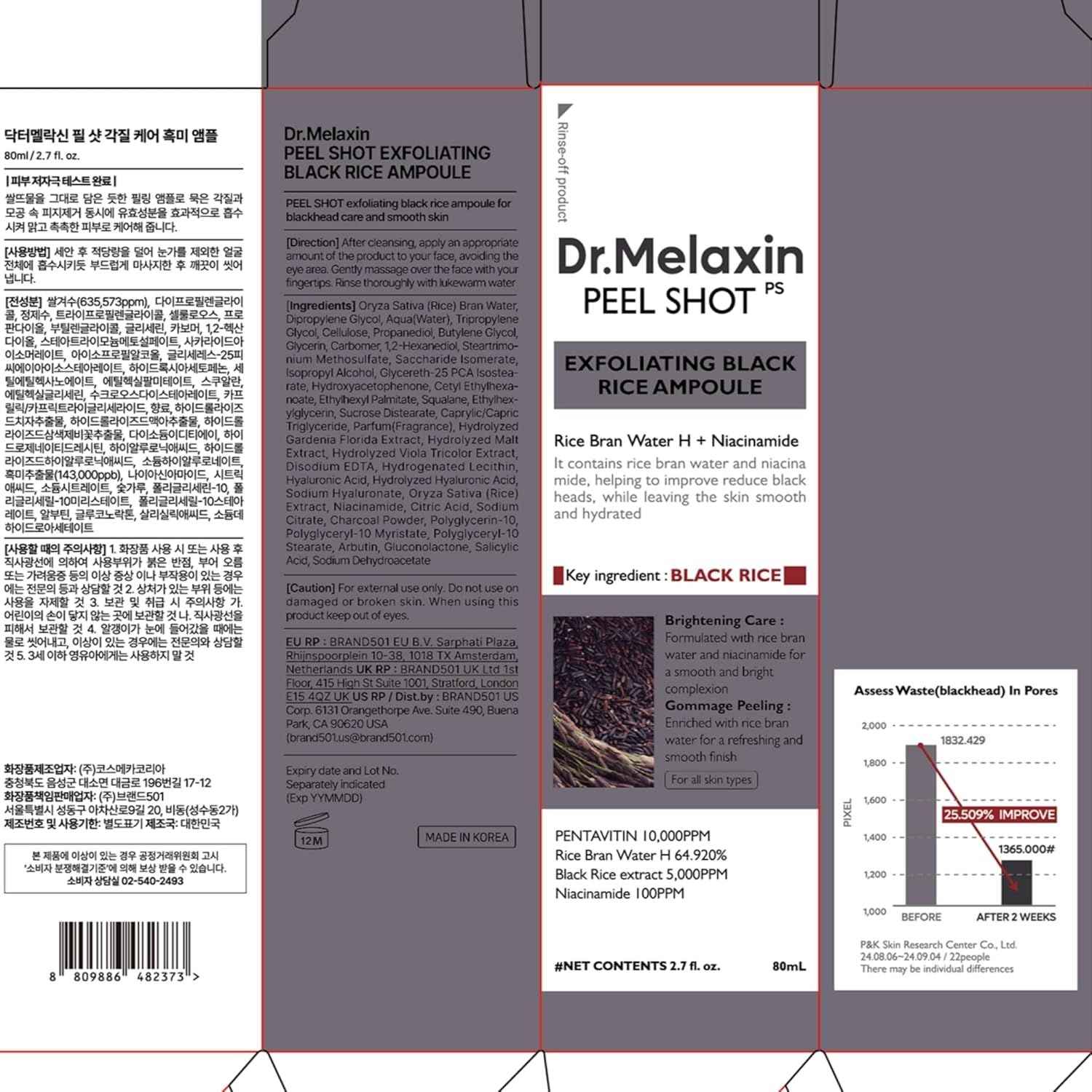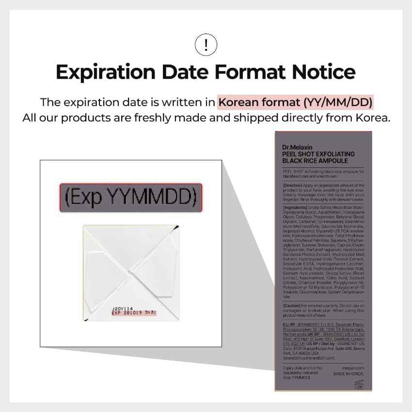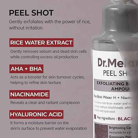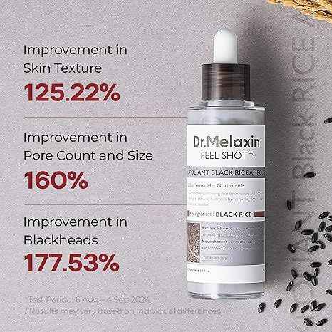 Dr.Melaxin Peel Shot Glow Black Rice Peeling Ampoule 80ml, Dead Skin Gentle Exfoliating Ampoule with Rice Water Extract, AHA BHA, Niacinamide, Daily Skin Texture Care, All Skin Types, Korean Skincare