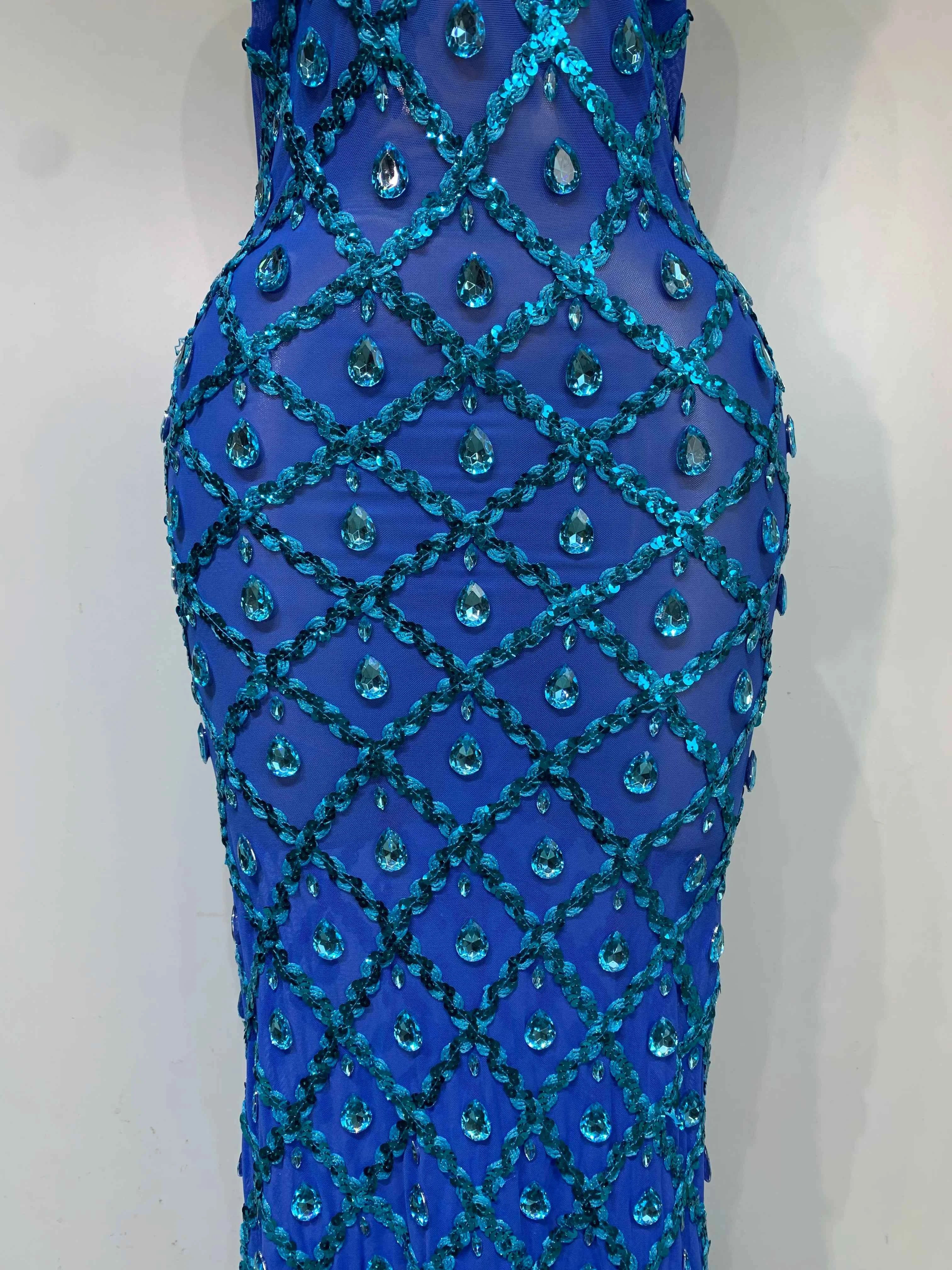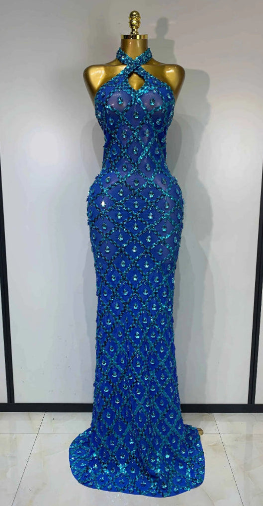 Kate Sparkly Rhinestone Backless Mesh Long Dress