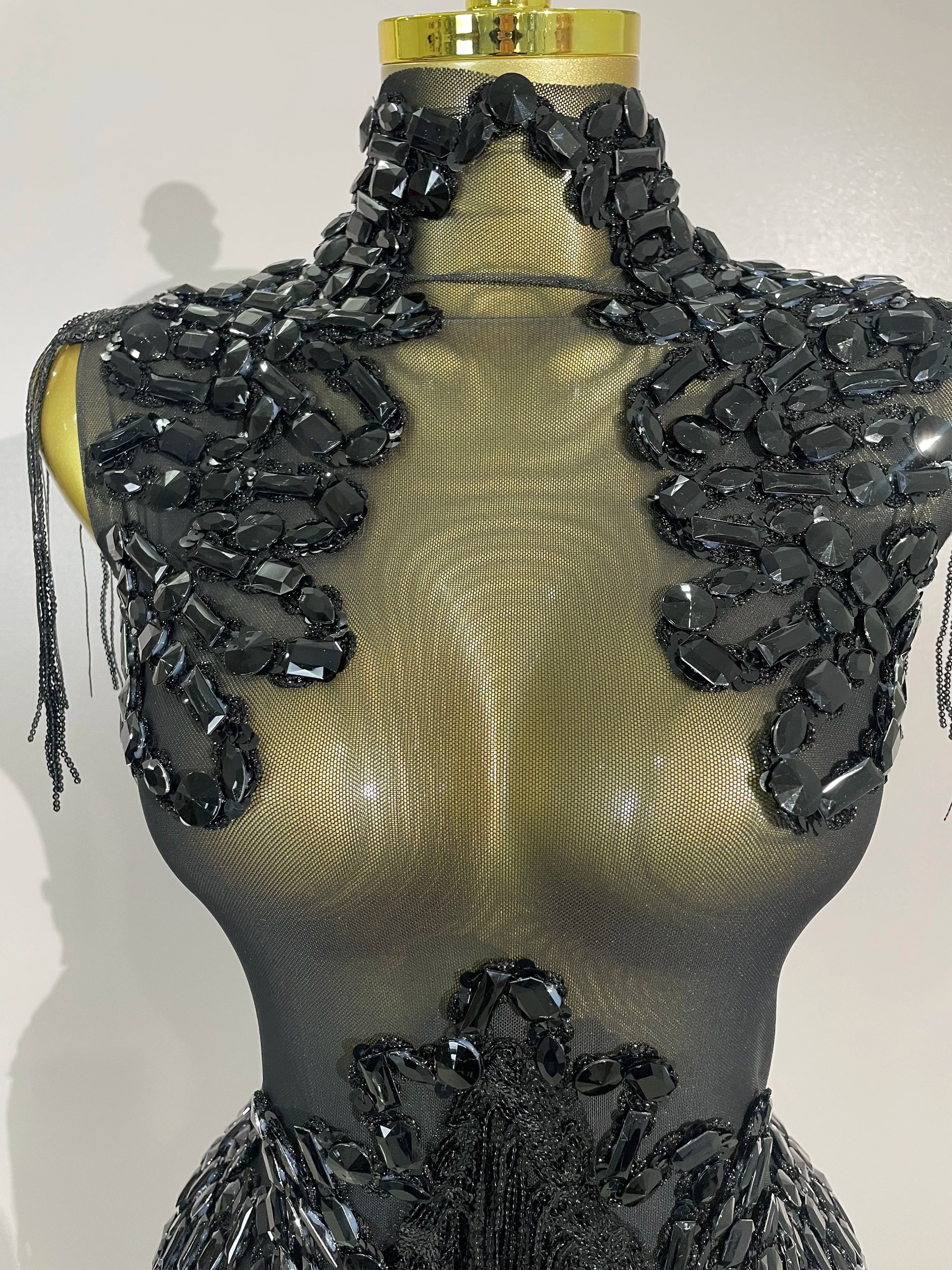 The Gabrielle Sparkly Rhinestone Sequin Tassel Mesh Bodysuit is made to steal every spotlight. Featuring shimmering rhinestones, sequins, and playful tassel details over a see-through mesh base, this stretch bodysuit hugs your curves and moves with you. Perfect for birthday parties, club nights, stage performances, photoshoots, and any occasion where bold, glamorous energy is required. Be daring, be sparkling, be remembered.