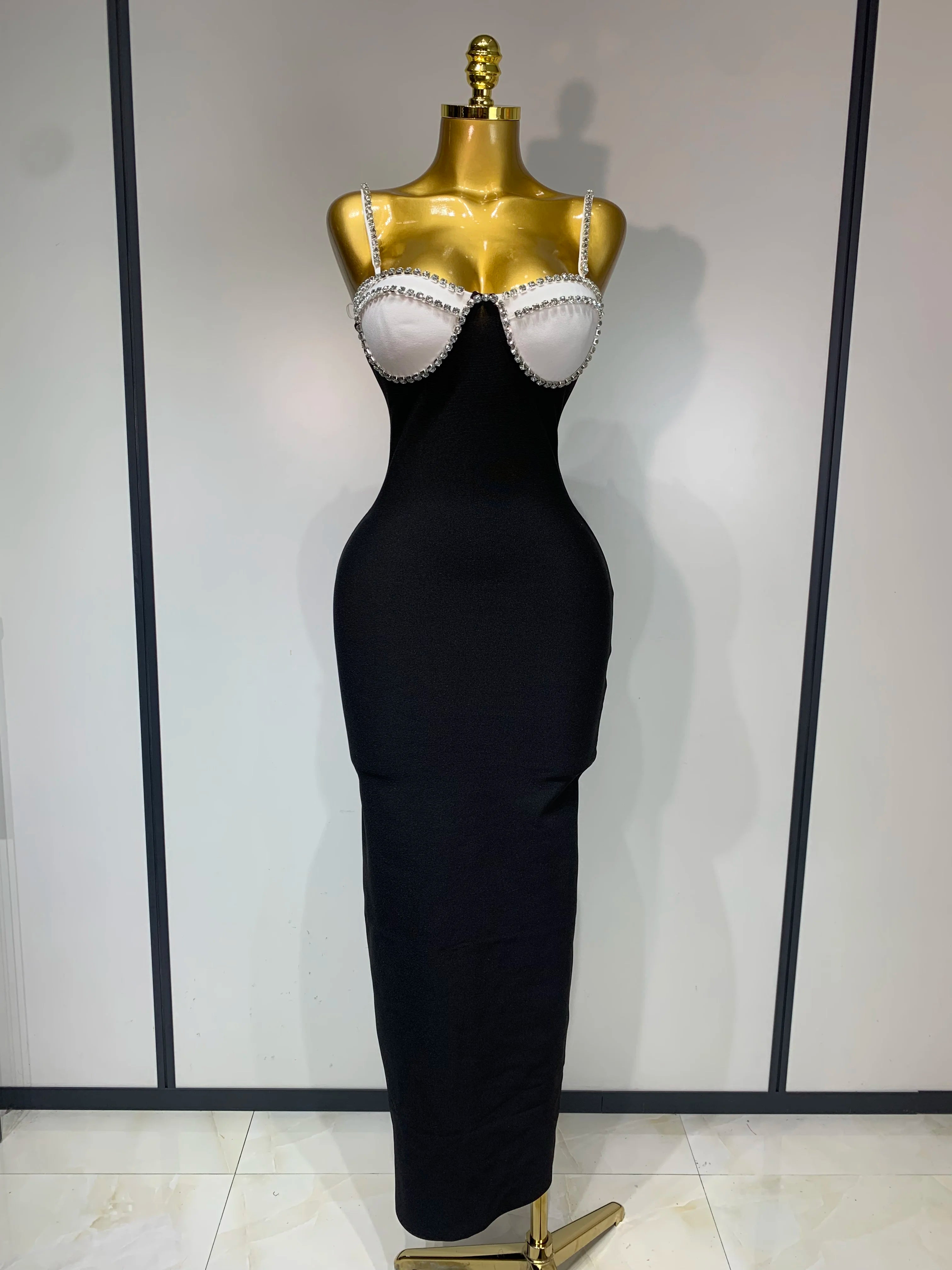 This red maxi bandage dress features a striking backless design with diamond detailing that adds a refined, luxurious shine. The bodycon silhouette shapes smoothly from top to hem, giving a polished celebrity-inspired look. Ideal for evening events, birthdays, and upscale parties, this dress delivers elegance with a bold, modern edge.