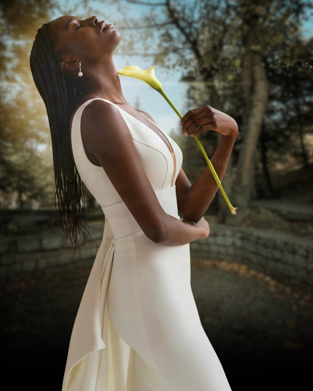 Turn heads in this stunning mermaid wedding gown, crafted from luxurious satin for a sleek, sculpted silhouette. The deep V-neckline adds a touch of sophistication, beautifully complementing the backless design for an effortlessly glamorous look. A dramatic oversized bow at the back creates a statement-worthy finish, adding a hint of couture flair. Perfect for the bride who wants timeless elegance with a modern edge, this gown ensures all eyes will be on you as you walk down the aisle.