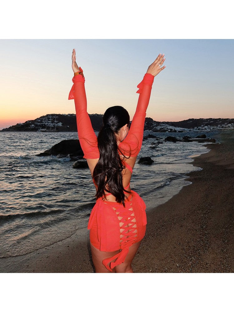 Elements: Lace Up, Patchwork, Pure Color, Tie-wrap, Plain Color, See Through, Hollow-out