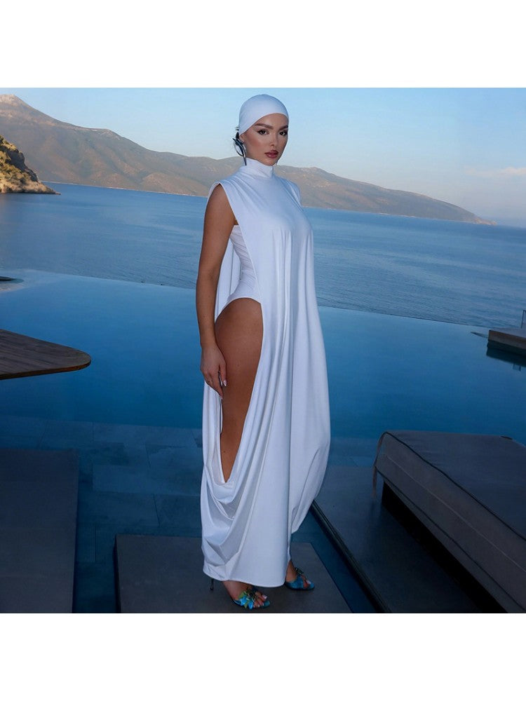 Irregular Bodysuits Waist Cut Maxi Dress Sets