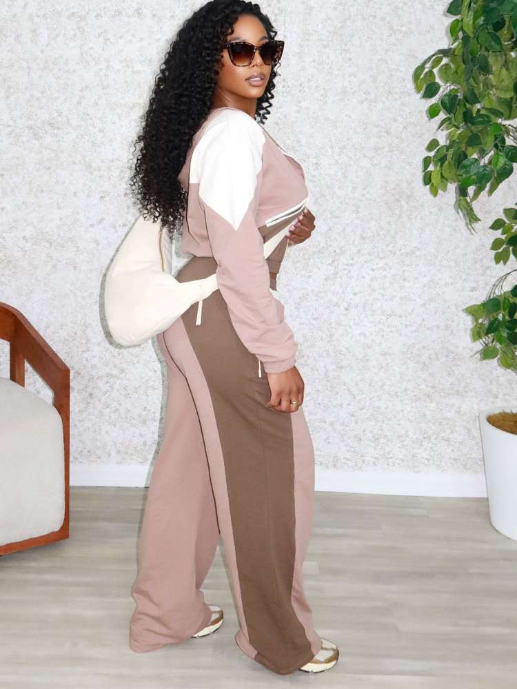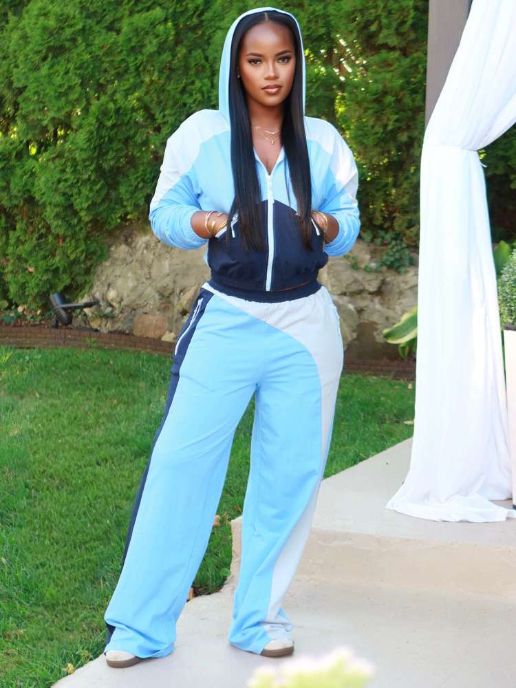 Colorblock Zipper Hooded Straight Pant Sets