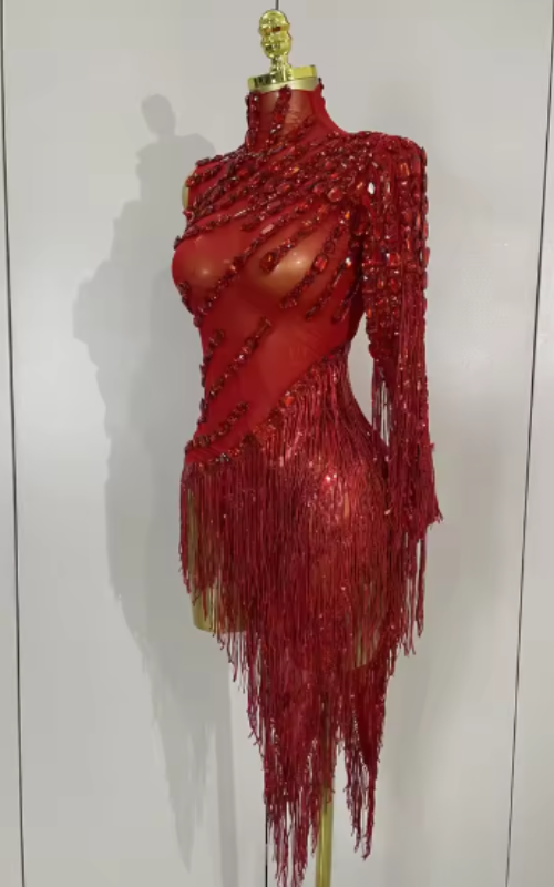 Turn every head in the Ayla Sparkly Rhinestone Tassel Sheer Dress. Featuring a dazzling rhinestone design, bold see-through details, and playful tassel accents, this dress is made for women who love confidence and allure. Perfect for birthday celebrations, nightclubs, red-carpet events, or fashion-forward parties, Ayla is your ultimate statement piece.