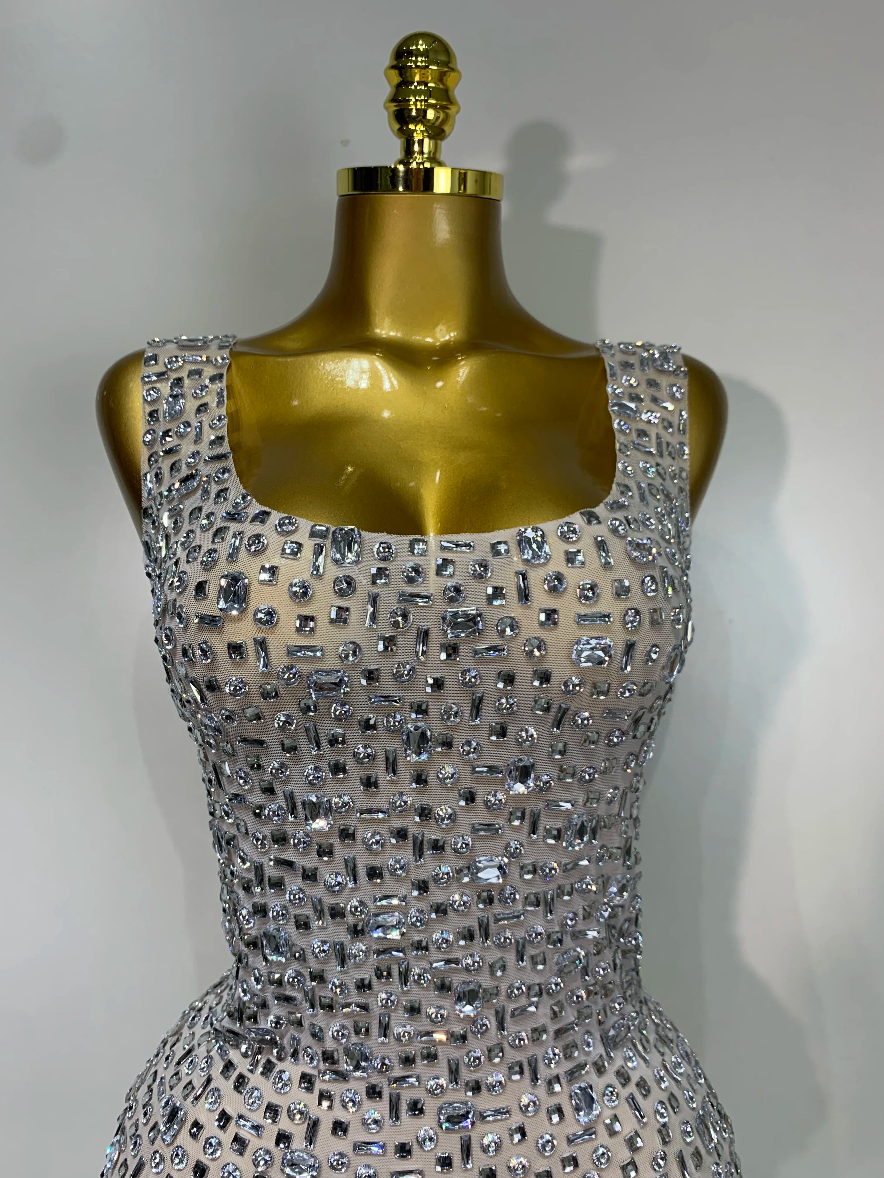 Carole luxury sparkly rhinestone sexy mesh see through short dress