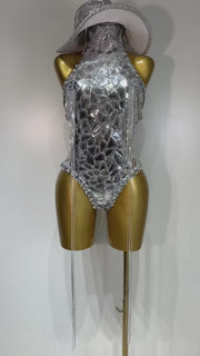 Brixton Sparkly Silver Bodysuit Sexy Two Pieces Outfit