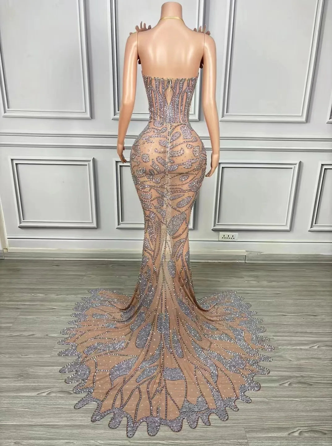 Turn every head with the Kira Sexy Flashing Diamonds Prom Dress. This show-stopping gown is designed for the confident wearer who wants maximum impact at their next special occasion. The entire dress is encrusted with brilliant, flashing diamond-like stones, ensuring you sparkle from every angle.