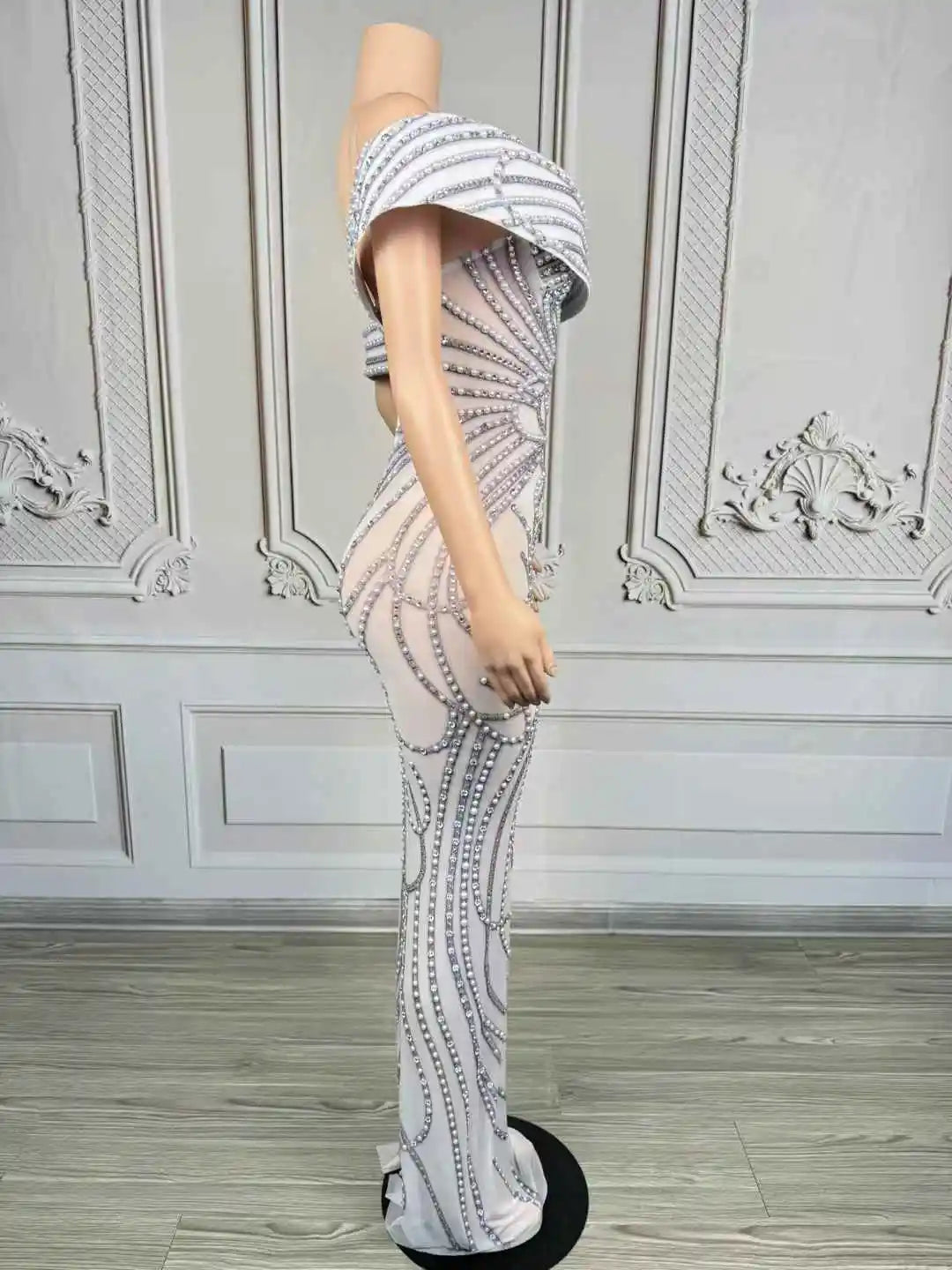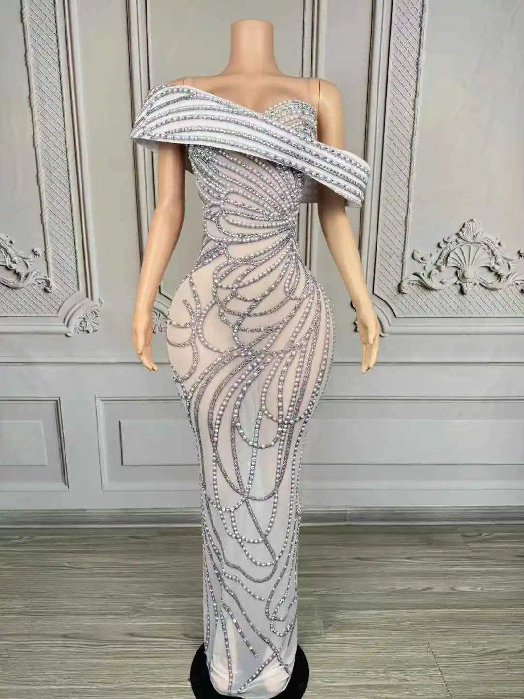 Skai Sparkling Pearls Rhinestone Evening Dress