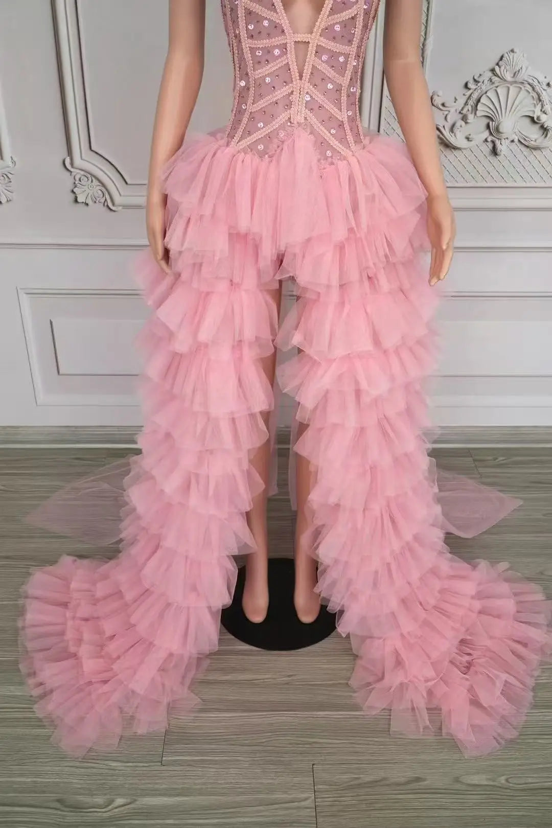 Radiate pure elegance in the Tiana Dress — a captivating pink sheer gown adorned with shimmering rhinestones and a daring deep V neckline. Designed for the confident woman who wants to sparkle with sophistication and leave a lasting impression on prom night.
