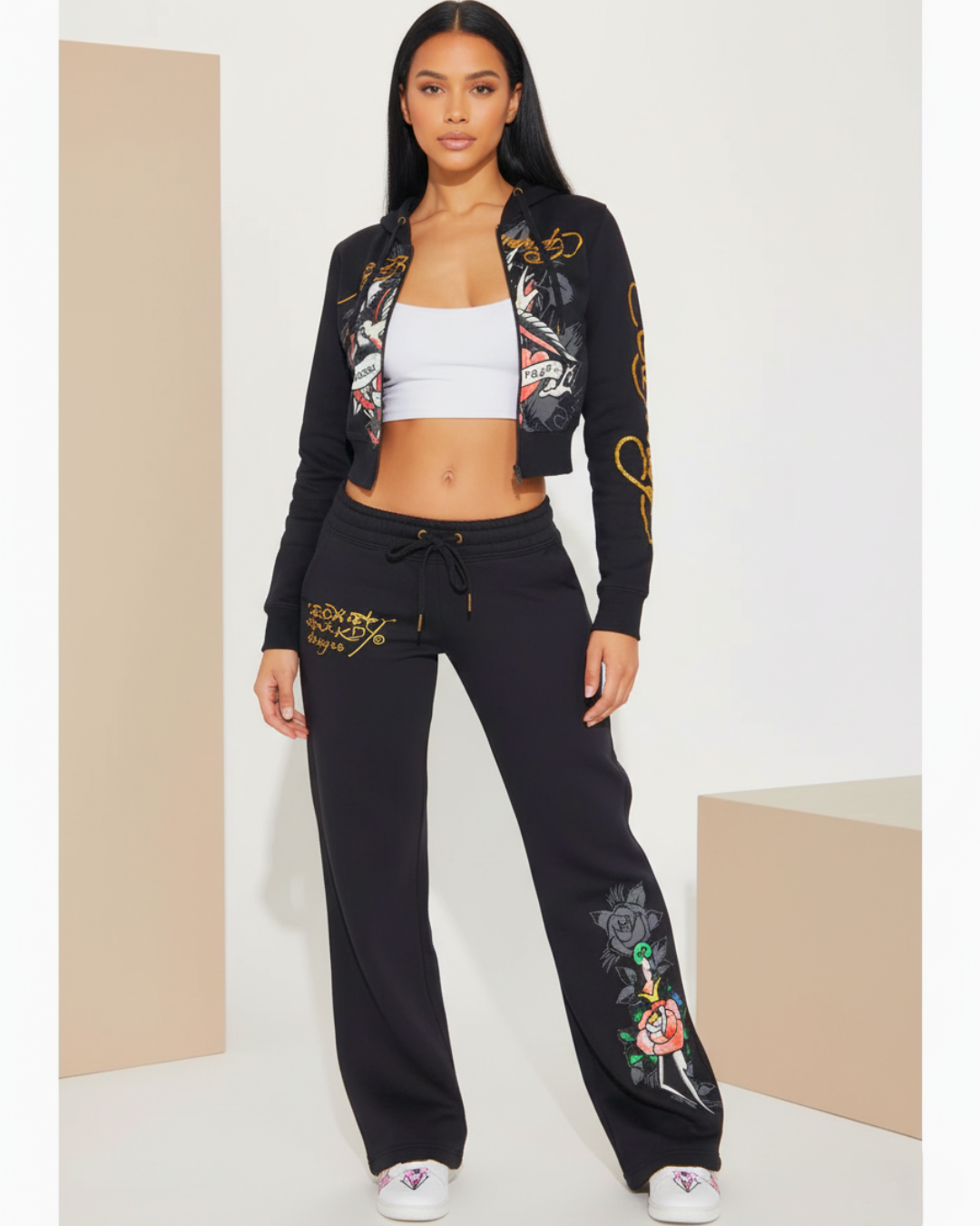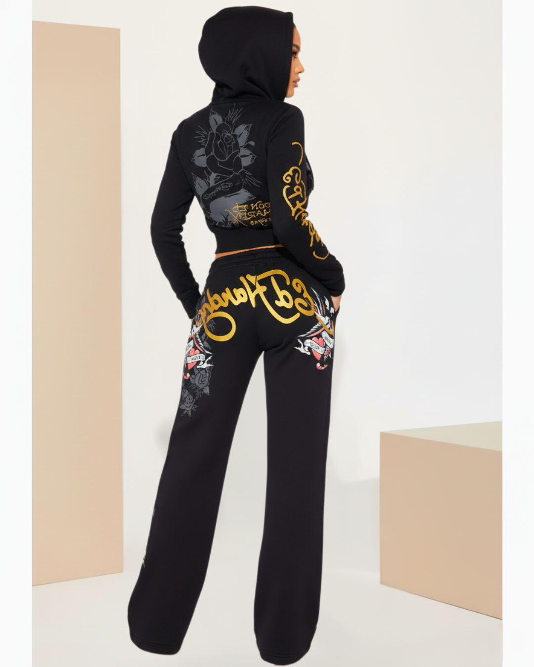 Swallow Bird Cropped Hooded Pant Sets