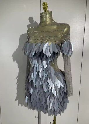 The Cleo Luxury Sparkly Diamond Mini Dress is pure art in motion. Designed with a sheer mesh base and adorned with shimmering diamond accents and bold 3D acrylic leaf details, this transparent mini dress is made to steal every spotlight. The sculpted fit enhances your shape while the reflective elements catch light from every angle. Perfect for birthday celebrations, high-fashion parties, stage moments, club nights, and editorial photoshoots where playing it safe is not an option.