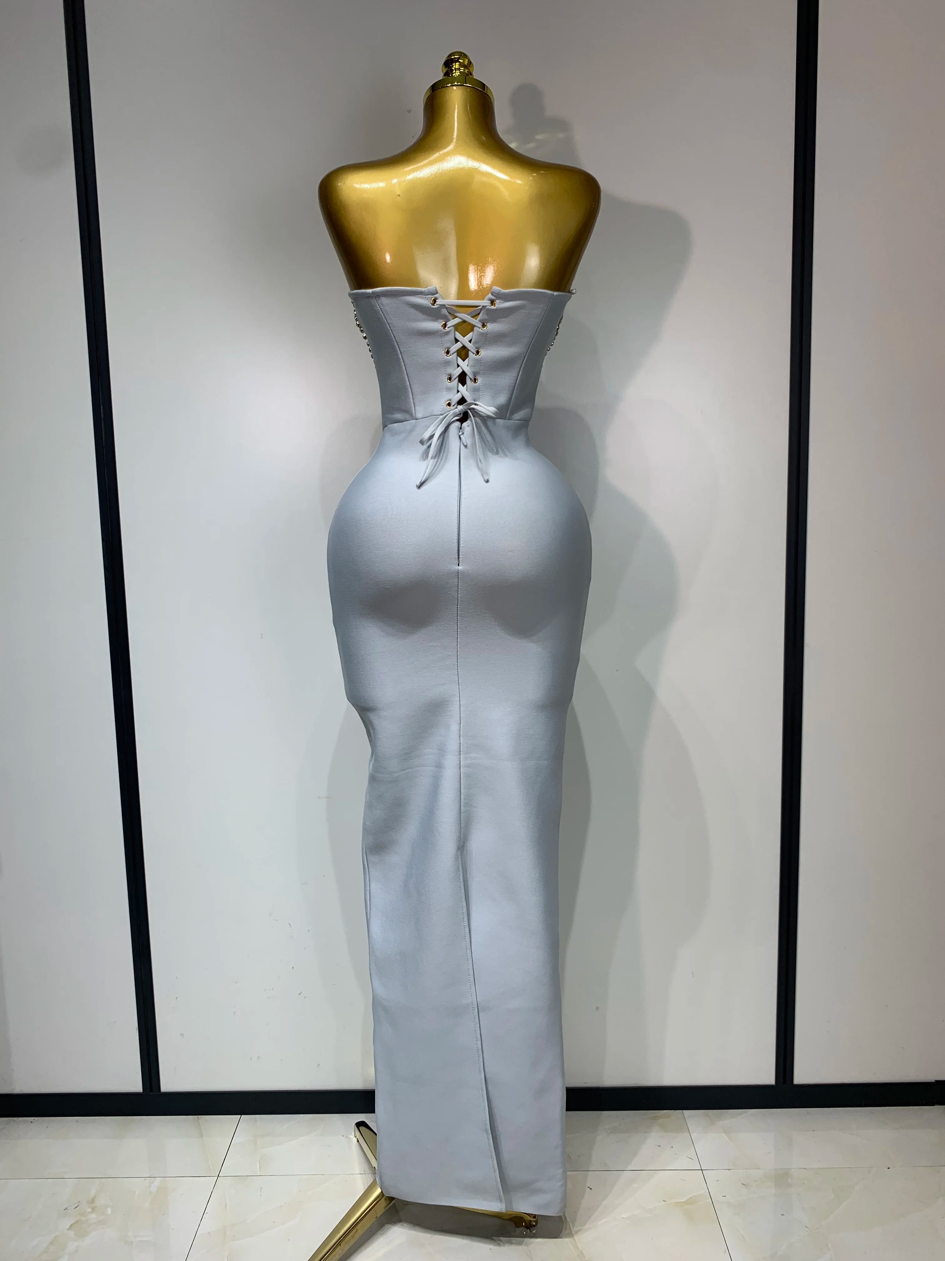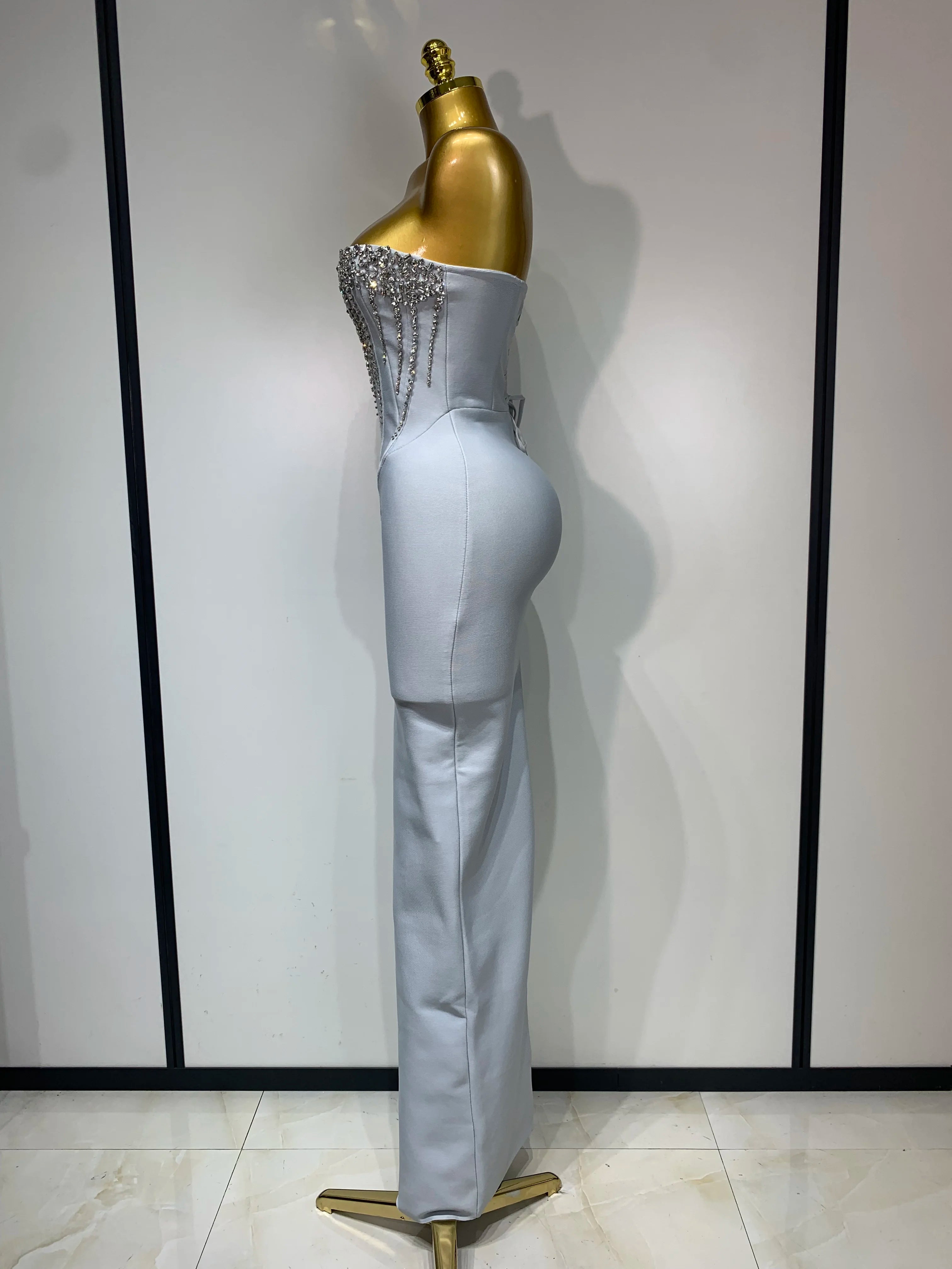 Jasmine Strapless Beaded Grey Bandage Evening Dress