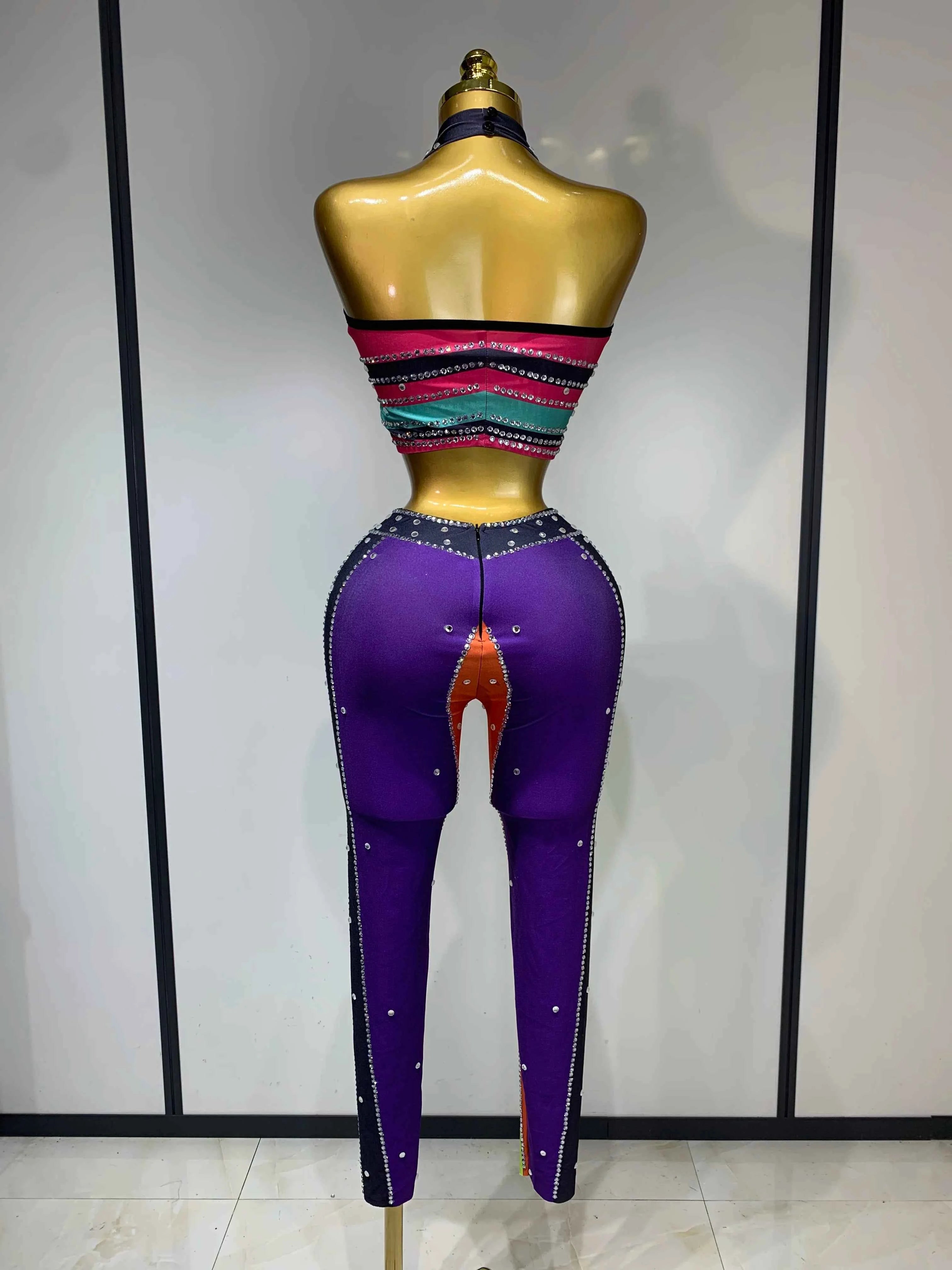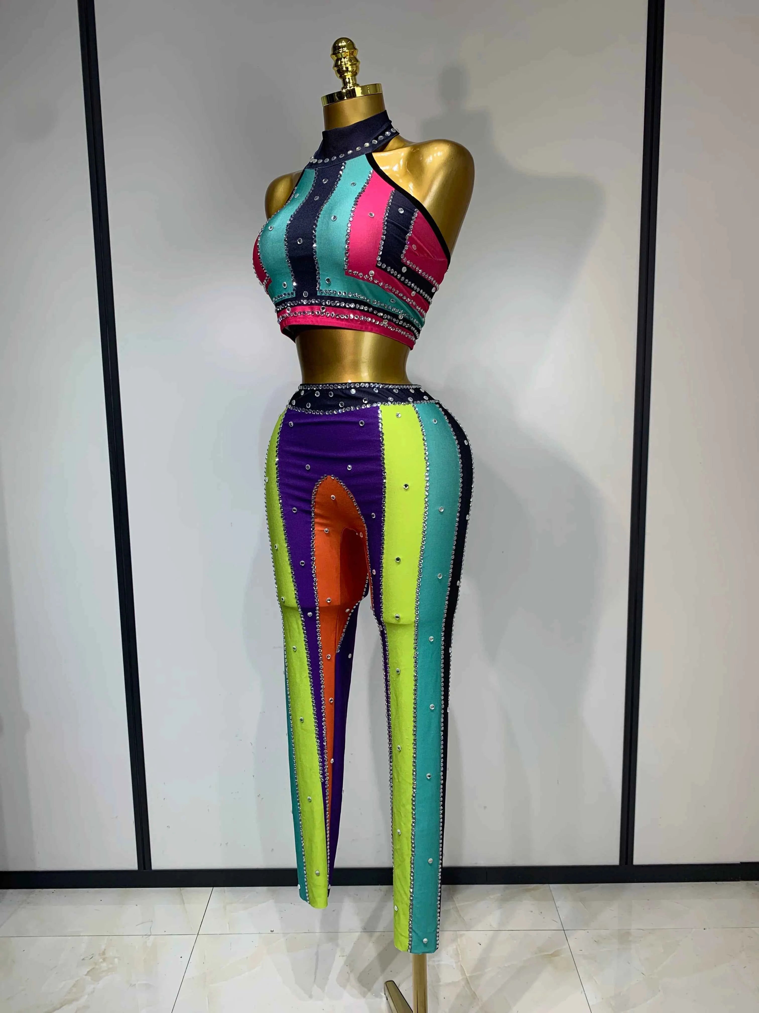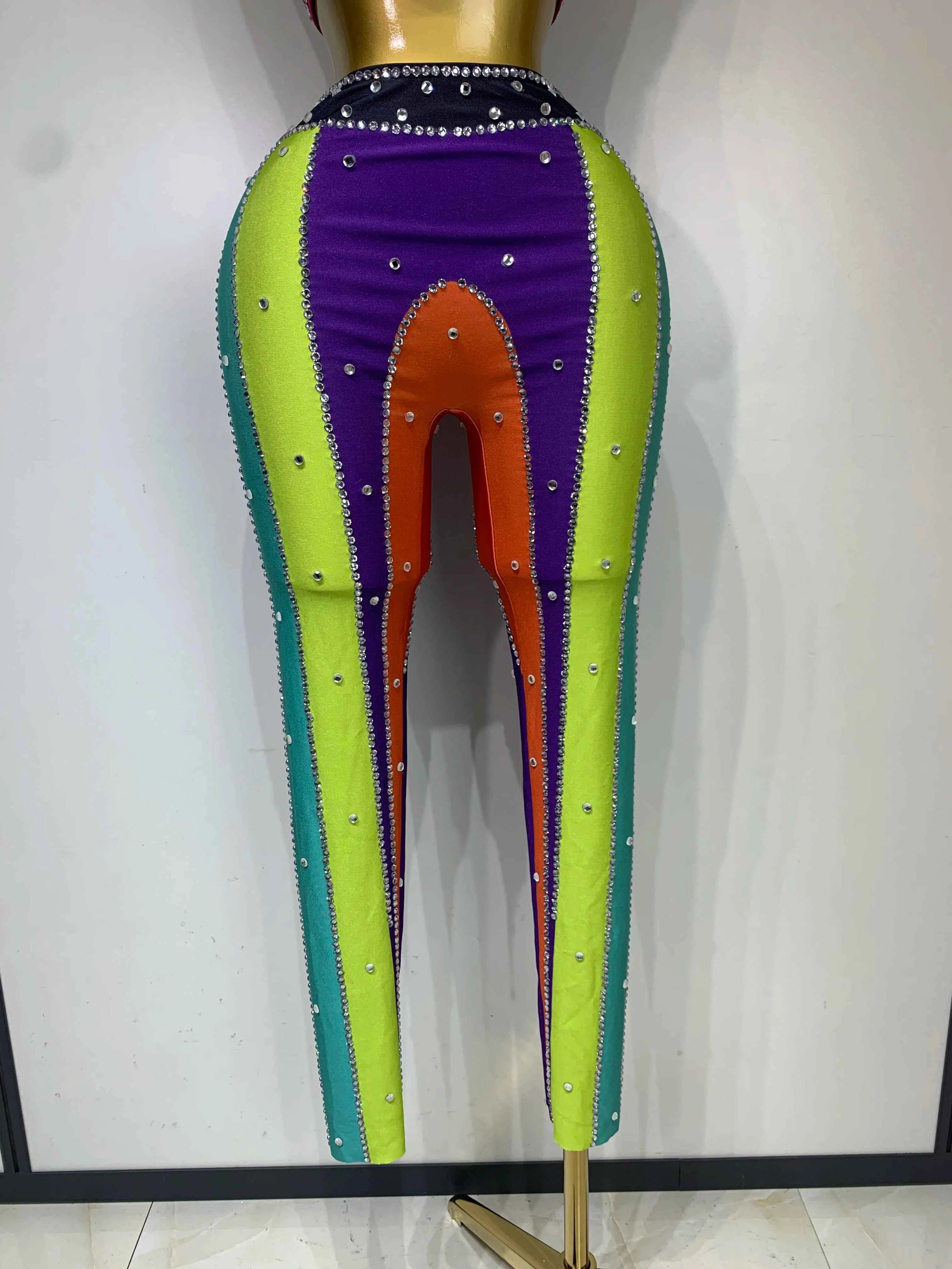 Pamela is all about bold sparkle and movement. This Sparkly Rhinestones Colorful Top and Pants Two-Piece Set features a rhinestone-studded top paired with matching pants in a playful, colorful design. Perfectly fitted and dazzling from every angle, it’s ideal for birthdays, club nights, parties, stage performances, and events where you want to shine from head to toe.