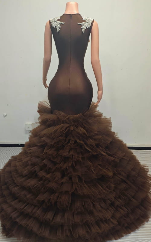 Step into spotlight-level glamour with this mermaid prom gown designed to make an entrance. The silver Art Deco crystal bodice brings structured sparkle with a sculpted, couture feel, while the fitted mermaid silhouette highlights the waist and hips. A high slit adds modern edge, flowing into a tiered tulle ruffle skirt that delivers movement and drama with every step. Perfect for prom nights, formal events, pageants, and red carpet moments where bold elegance is the goal.