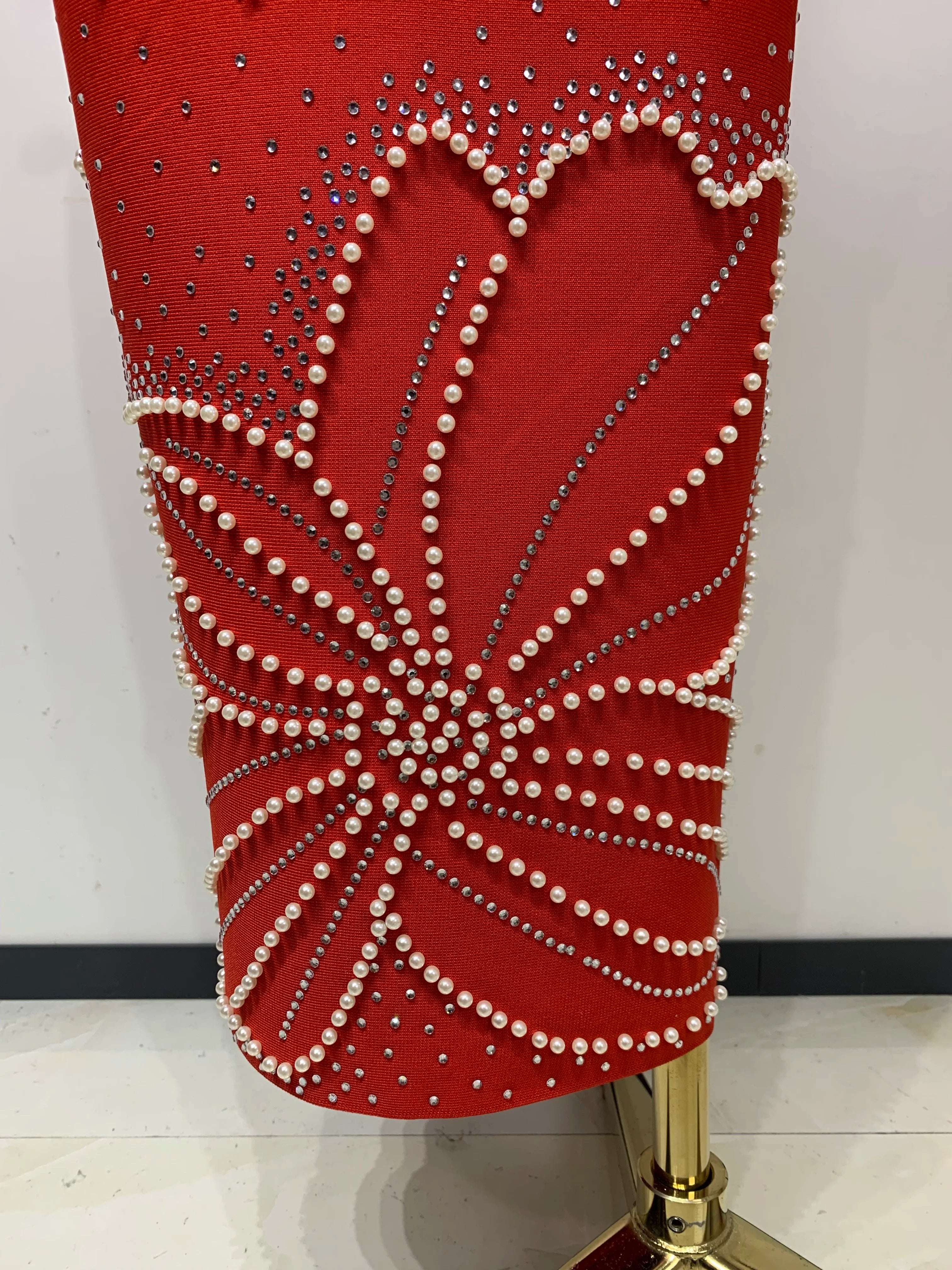 Cali Off Shoulder Beaded Red Maxi Bodycon Bandage Dress