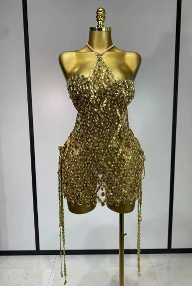 Shine bright in the Kyra Sparkly Sequin Diamond Mesh Two-Piece Dress Set. Featuring a dazzling mesh top covered in sequins and paired with a sleek skirt, this 2025 design is sexy, elegant, and perfect for evening parties, birthdays, or photoshoots. Make every entrance unforgettable with Kyra’s glamorous, show-stopping style.