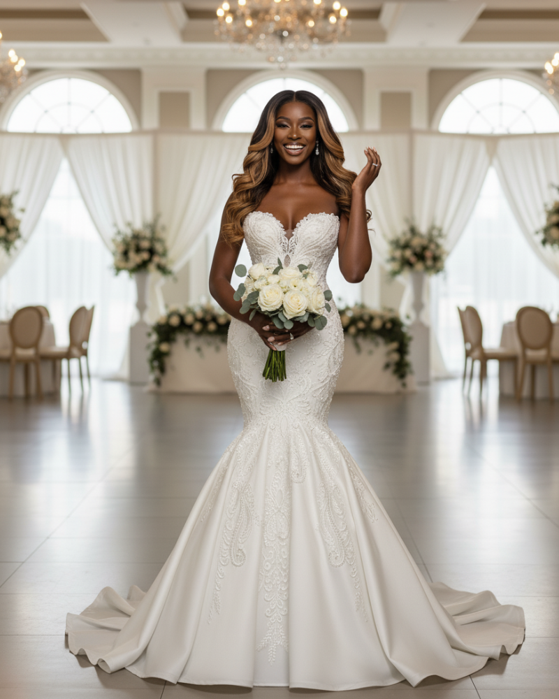 Radiate sophistication in our Sweetheart Sexy Mermaid  Wedding Dress, tailored for brides who seek elegance and luxury. This custom-made gown features a classic sweetheart neckline and a sleek mermaid silhouette crafted from satin and tulle, designed to highlight your figure beautifully. Adorned with crystal beading for a touch of glamour, this dress offers a stunning, high-end look that’s perfect for formal weddings. Step into the spotlight in a gown that embodies timeless style and modern allure, making your big day as memorable as you’ve always dreamed