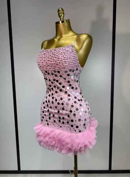 The Lilitya mini dress is made to shine under the lights. Covered in sparkling rhinestones and sequins, this body-hugging silhouette delivers nonstop glamour with every move. The mini length keeps the look bold and playful, while the high-shine finish makes it perfect for stage performances, dance nights, club events, and luxury birthday celebrations. Confident, eye-catching, and impossible to miss, this dress is built for moments that deserve attention.