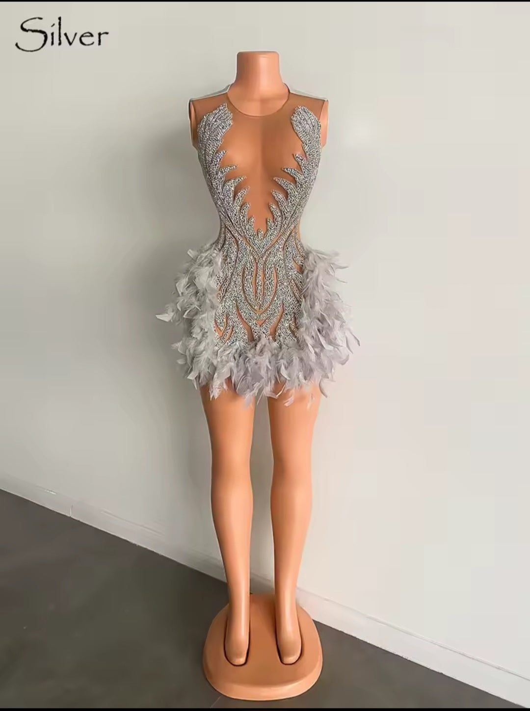 Intricate beading, crystals, sequins, and feather embellishments deliver a glamorous, illusion-inspired effect that shimmers with every movement. The sleeveless design with regular armholes keeps the focus on the embellishments while allowing comfort and ease of wear.