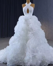 Halter Criss Cross Sleeveless Ruffles Lace Up Back Wedding Dress