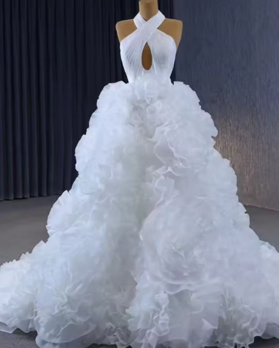 Soft, romantic, and effortlessly modern. This Wedding Bride Halter Criss Cross Sleeveless Bridal Dress is designed for brides who want elegance without the heavy drama. Featuring a flattering halter neckline with criss cross detailing, delicate ruffles, and a lace up back for a perfect fit, this gown flows beautifully with every step. Lightweight and refined, it’s perfect for weddings, receptions, garden ceremonies, beach weddings, or intimate celebrations where style feels personal and timeless.