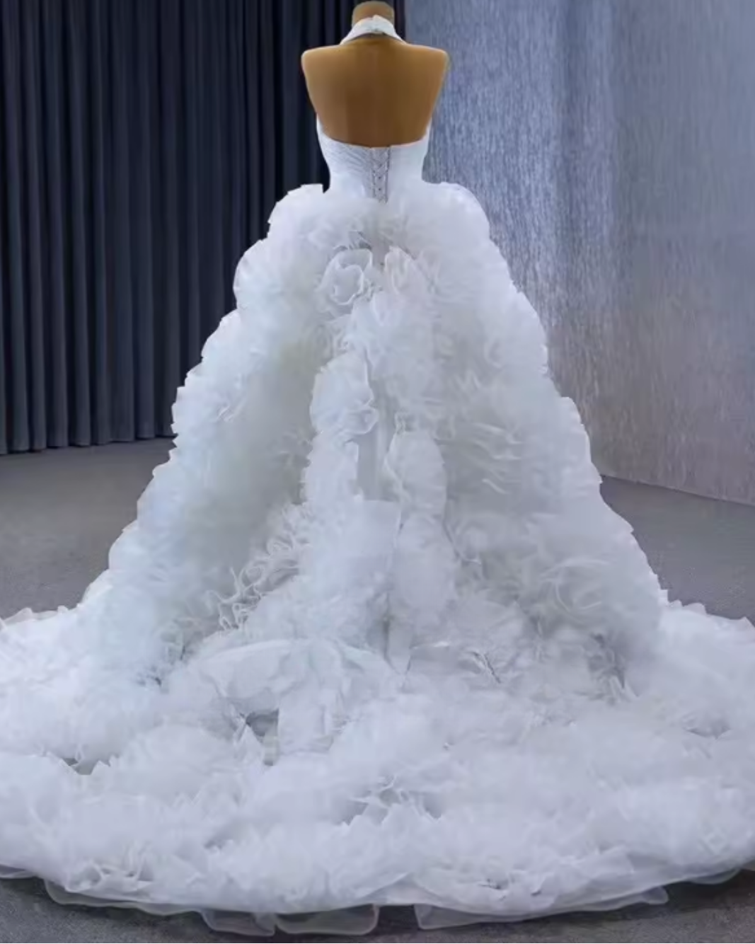 Wedding bride halter criss cross sleeveless ruffle lace up back bridal dress