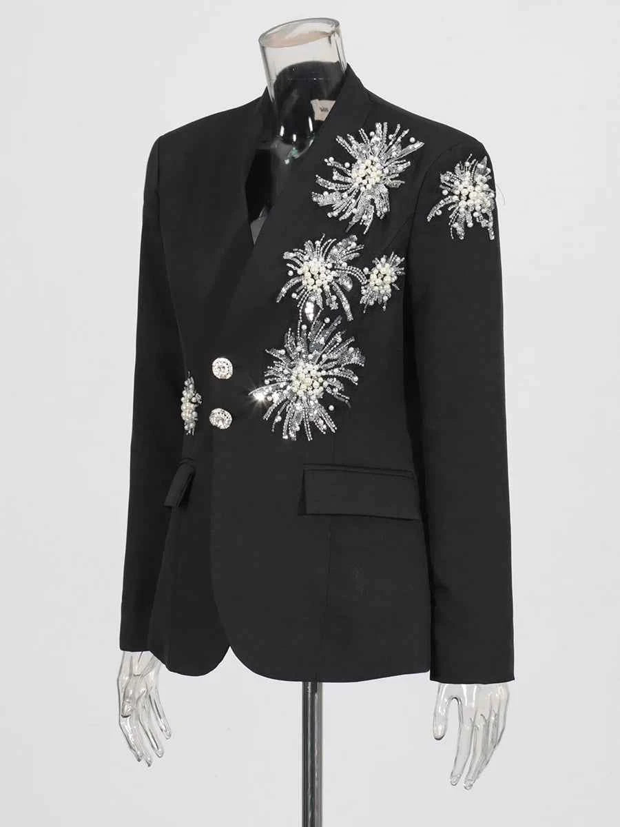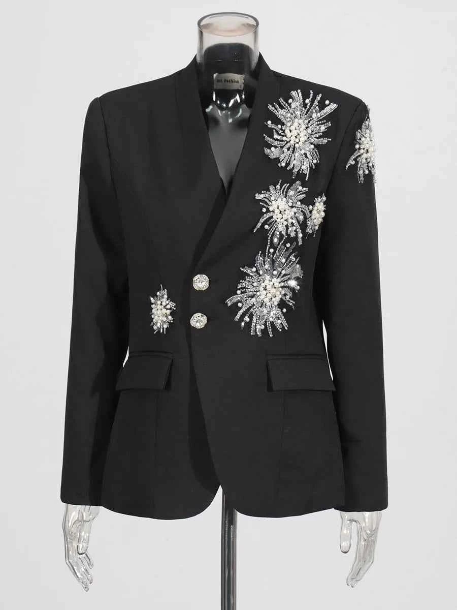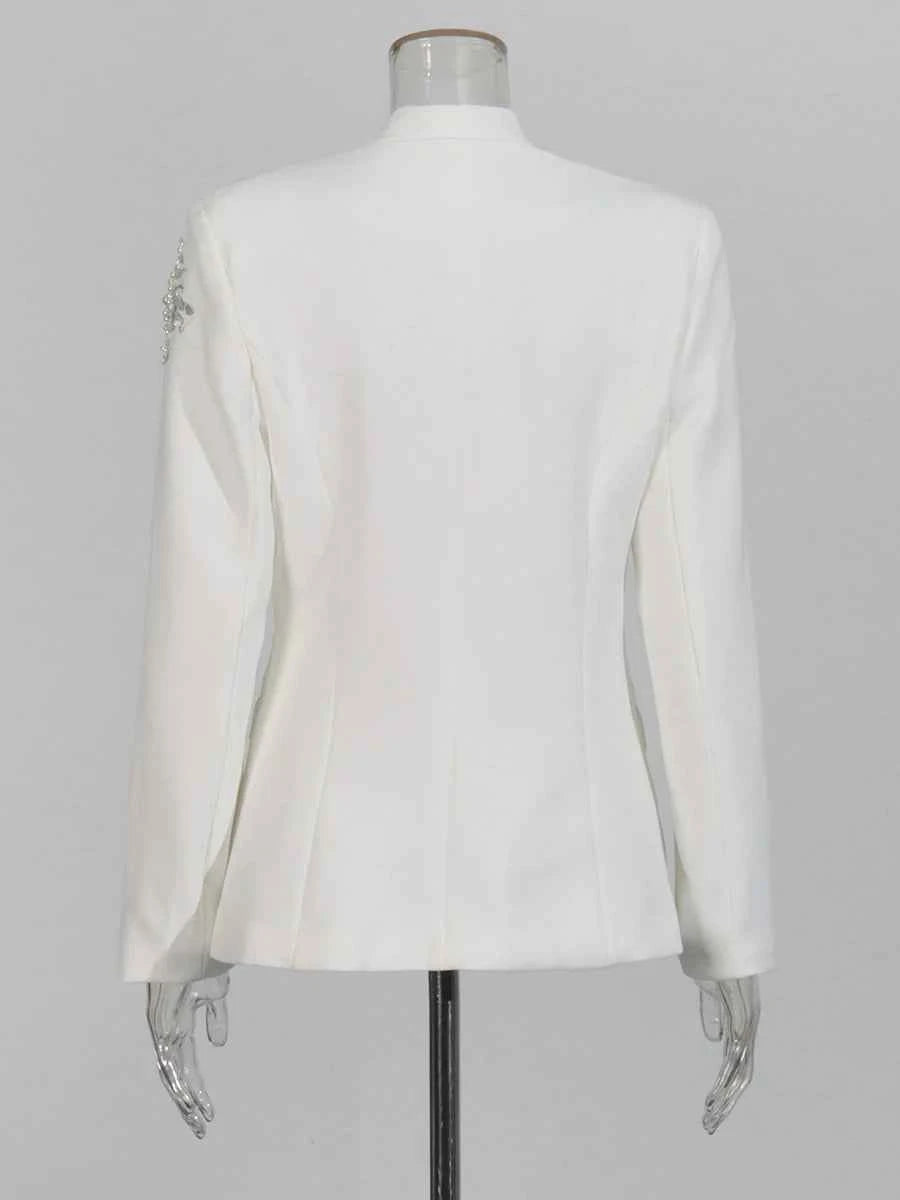 Ideal for shoppers searching for beaded blazers for women, slimming tailored jackets, notched collar formal blazers, and elegant long sleeve office blazers. A versatile piece that transitions seamlessly from boardroom to dinner plans.
