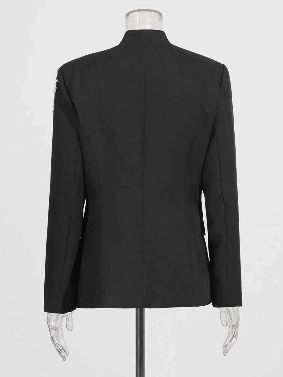 Refined, structured, and subtly striking, this solid spliced beading slimming blazer for women is designed for elevated everyday and formal styling. Featuring a classic notched collar and long sleeves, this tailored jacket blends minimalist structure with delicate beaded accents for a polished finish.