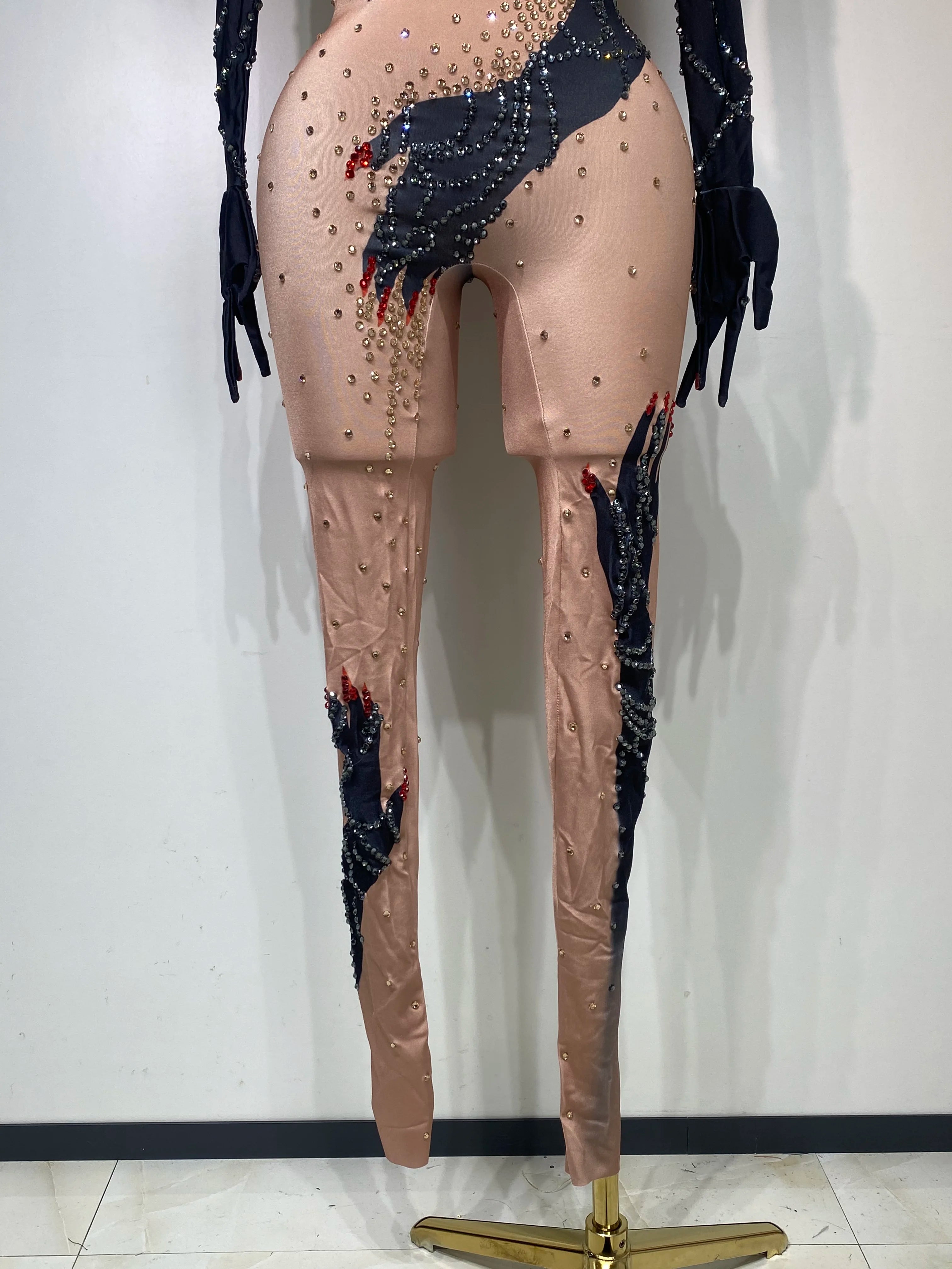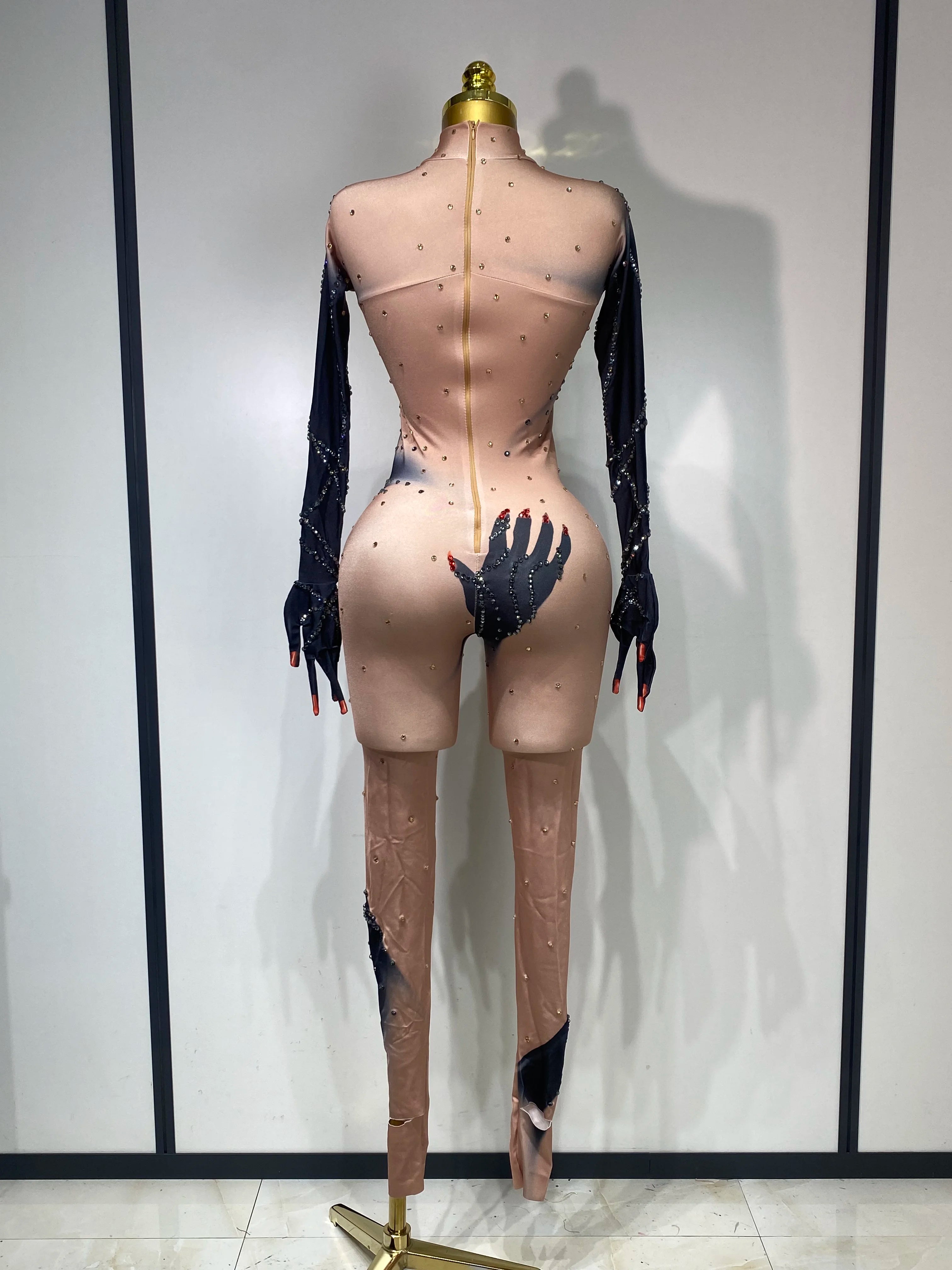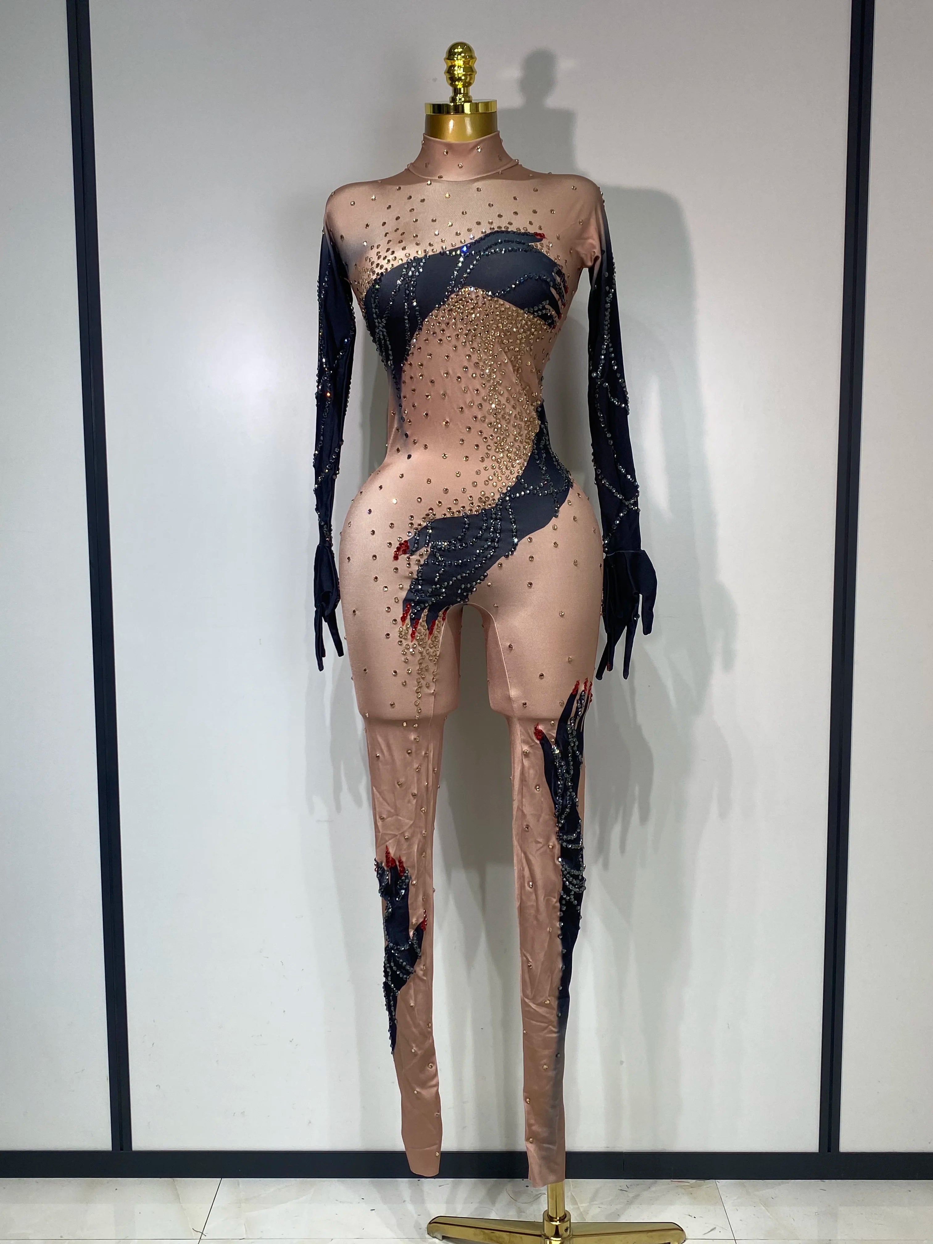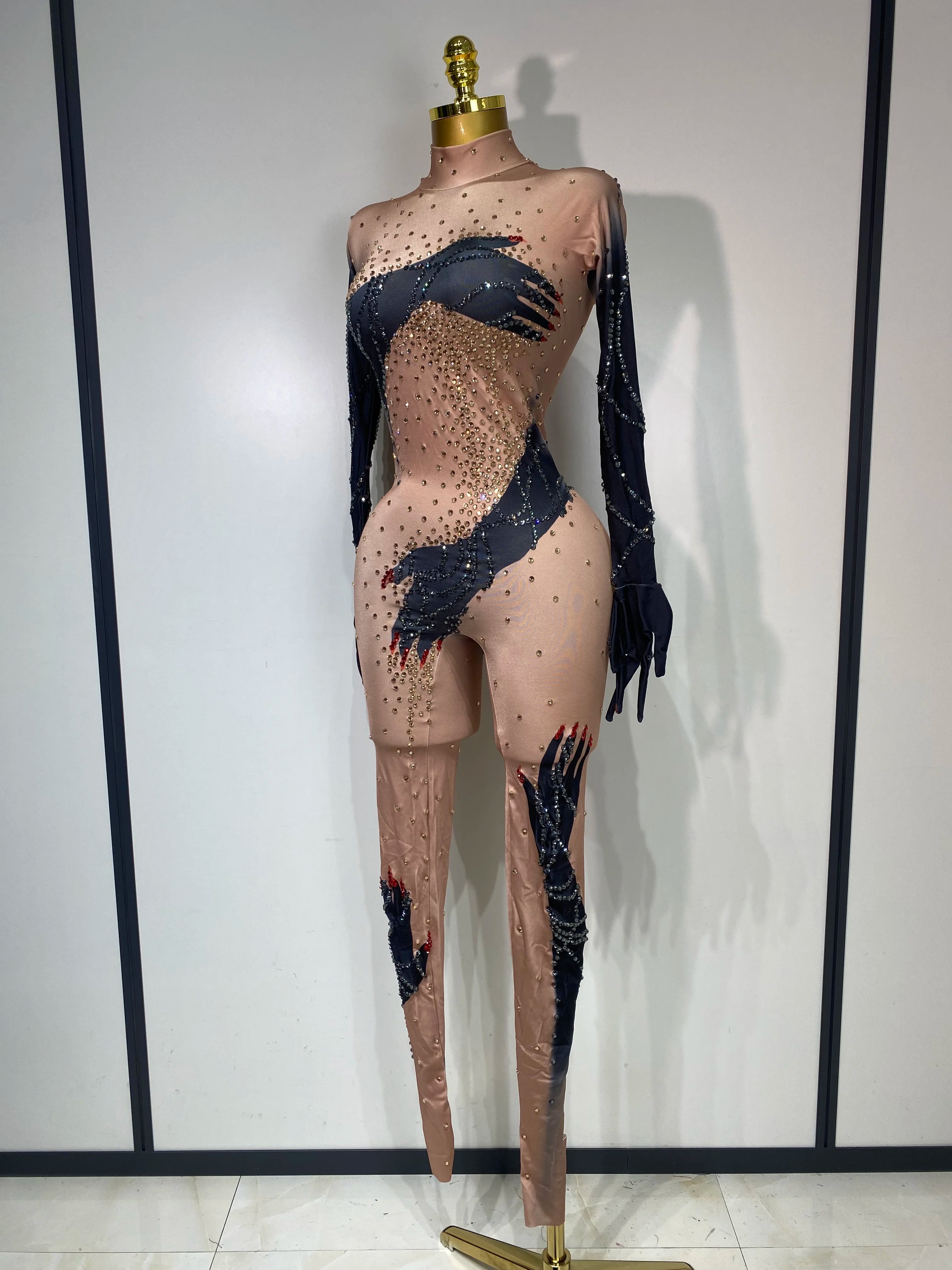 Novalyn Sparkly Rhinestones Bodycon Jumpsuit Nightclub Evening Party Outfit