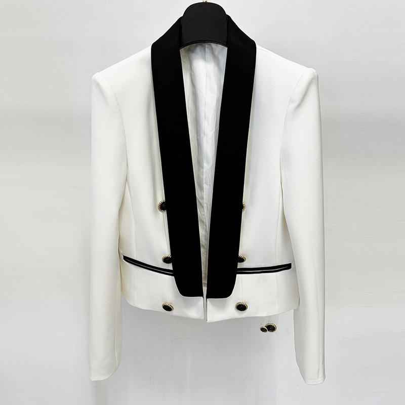 Color-Blocked Single-Breasted Women’s Short Tuxedo Jacket Luxury Blazer