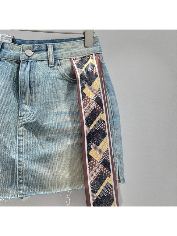 Cartoon Bear Decor Washed Denim Skirts