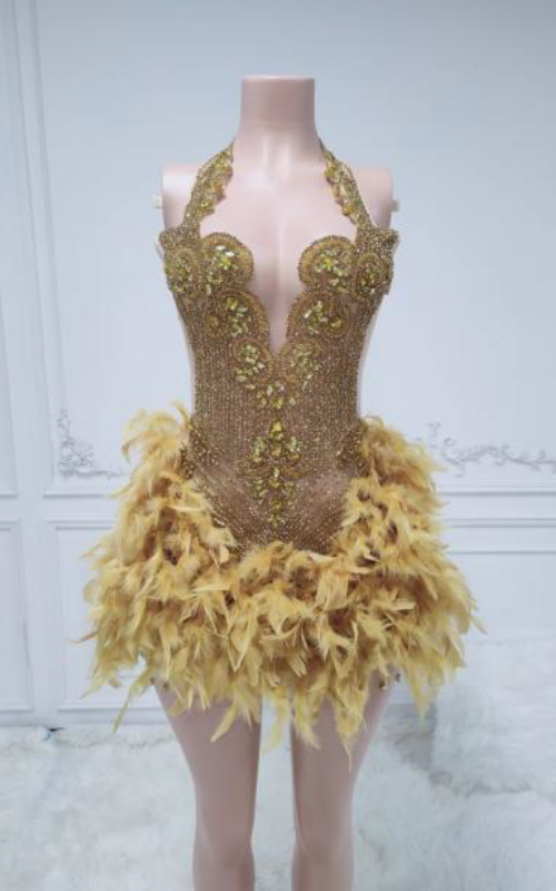 Shine bright in our Glitter Crystal Feathered Mini Birthday Dress. Featuring sparkling crystals and playful feather details, this mini dress hugs your curves while adding a touch of drama and fun. Perfect for birthday parties, cocktail events, photoshoots, and nights when you want to be the center of attention.