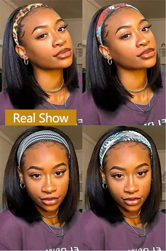 Headband Bob Wig – Short Straight Human Hair Glueless Wig, Easy Put-On-and-Go Style