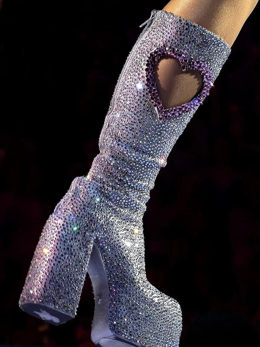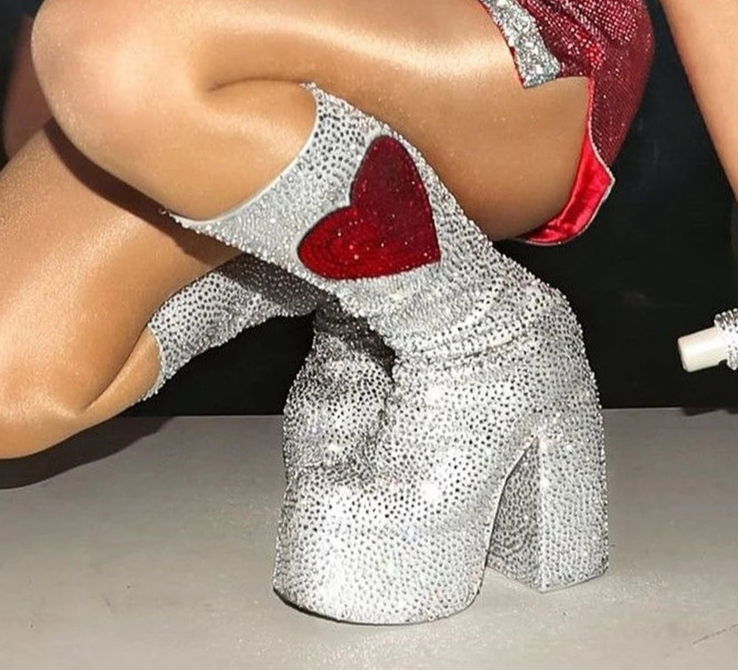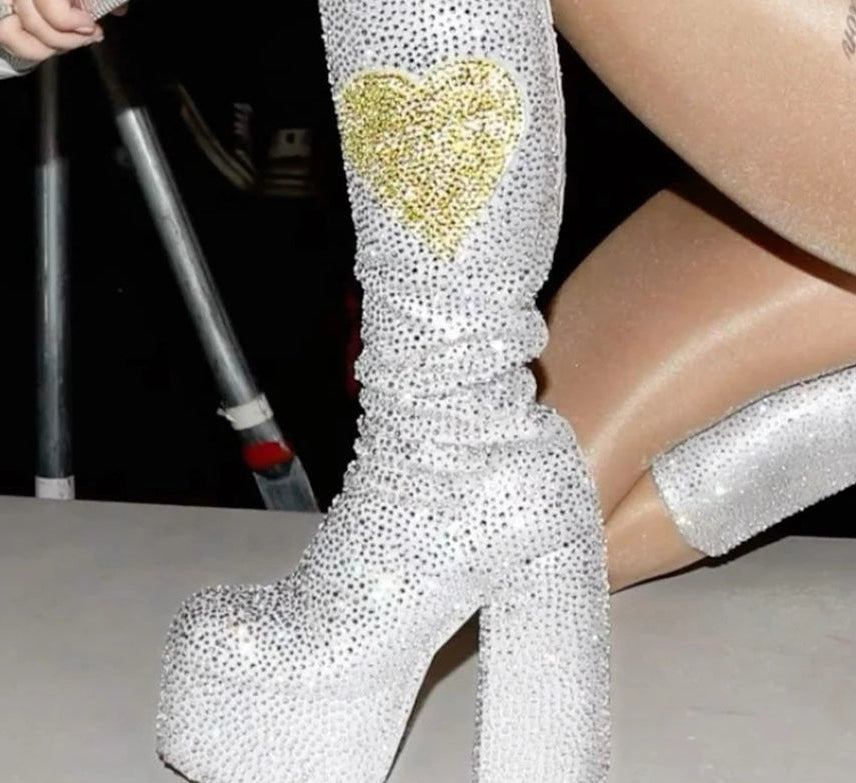 Step up your glam game with these Hollow Heart Glitter Rhinestone Platform Mid-Calf Boots. Featuring sparkling glitter, dazzling rhinestones, a chunky heel, and a fun hollow heart design, these boots are perfect for parties, stage shows, or any event where you want to shine. Comfort meets bold style in every step.