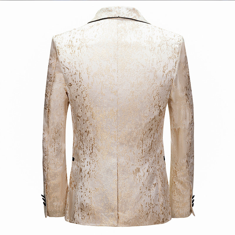 Radiate elegance in our Luxury Cream and Gold Metallic Pattern Slim Fit Dinner Jacket + Pants, crafted for men who move with quiet confidence and undeniable style. The cream base with gold metallic detailing creates a rich, sophisticated glow perfect for weddings, dinner parties, galas, and stage events. Tailored in a modern slim fit, this 2-piece suit blends opulence with precision — because luxury should never whisper, it should shine.