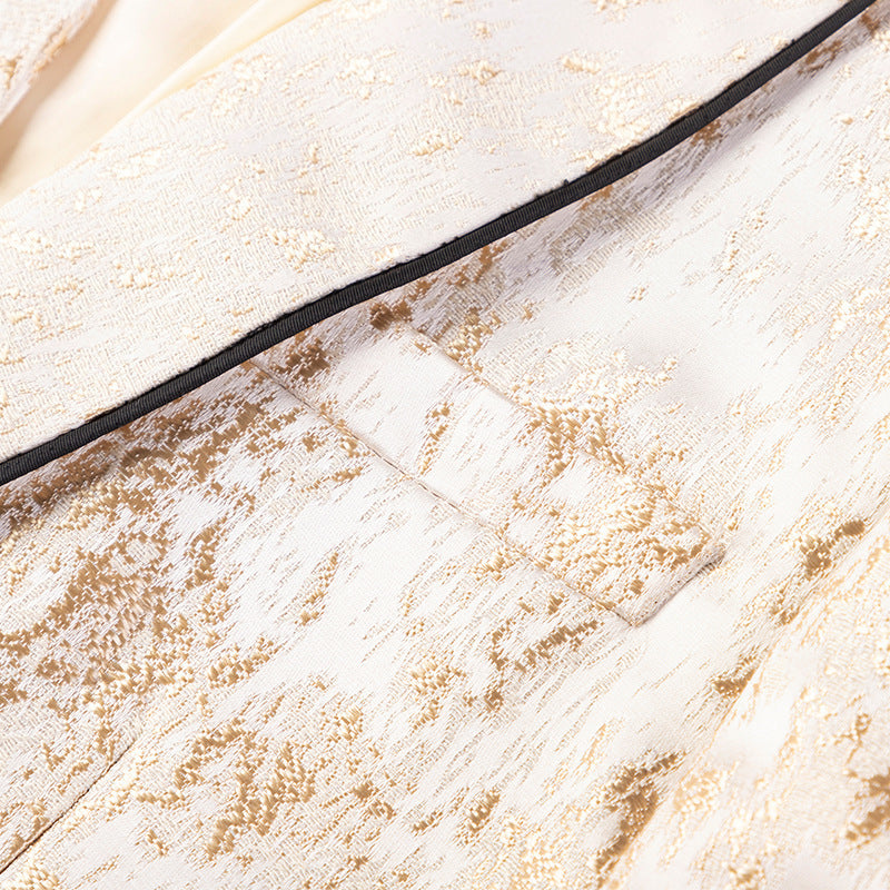 Luxury Cream and Gold Metallic Pattern Slim Fit Dinner Jacket Pants | Men’s 2-Piece Suit