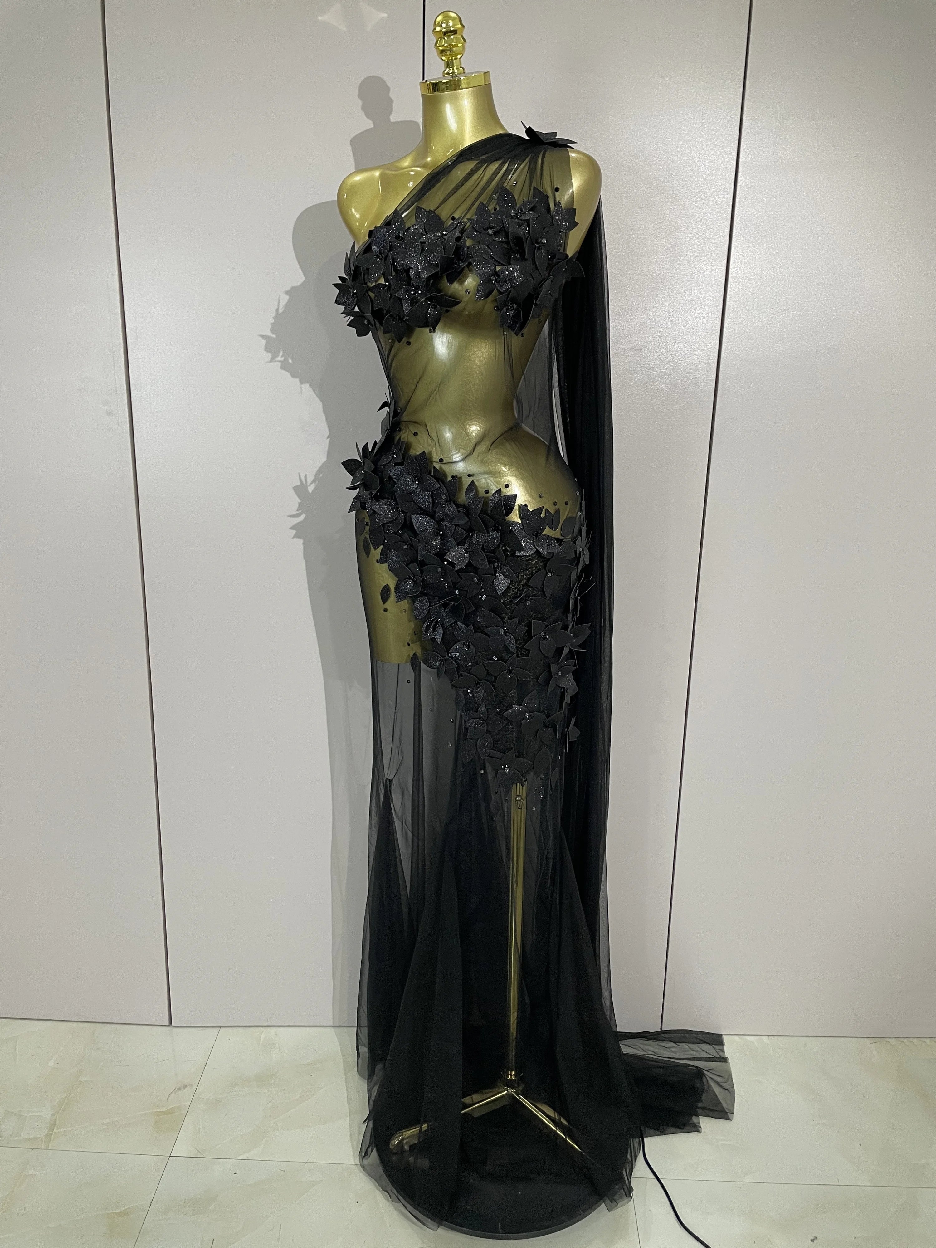 Command attention in this one-shoulder floor-length bodycon dress, crafted from a smooth polyester-spandex blend for a flawless, figure-enhancing fit. Featuring a diagonal neckline, zipper closure, and elegant appliqué details, this solid sheath silhouette exudes sophistication and sensuality. Perfect for middle-aged women, this all-season gown is ideal for evening events, galas, or upscale parties.