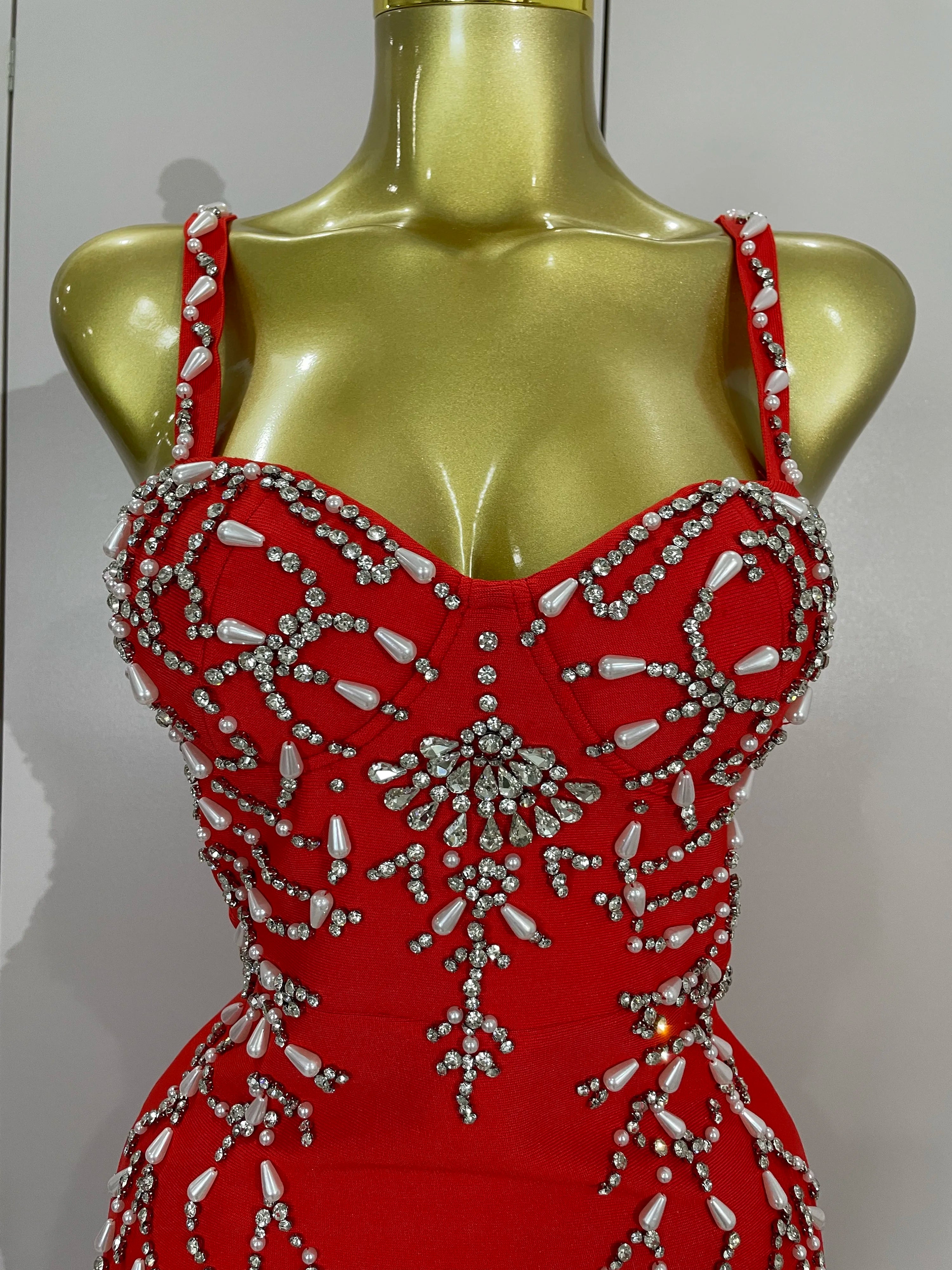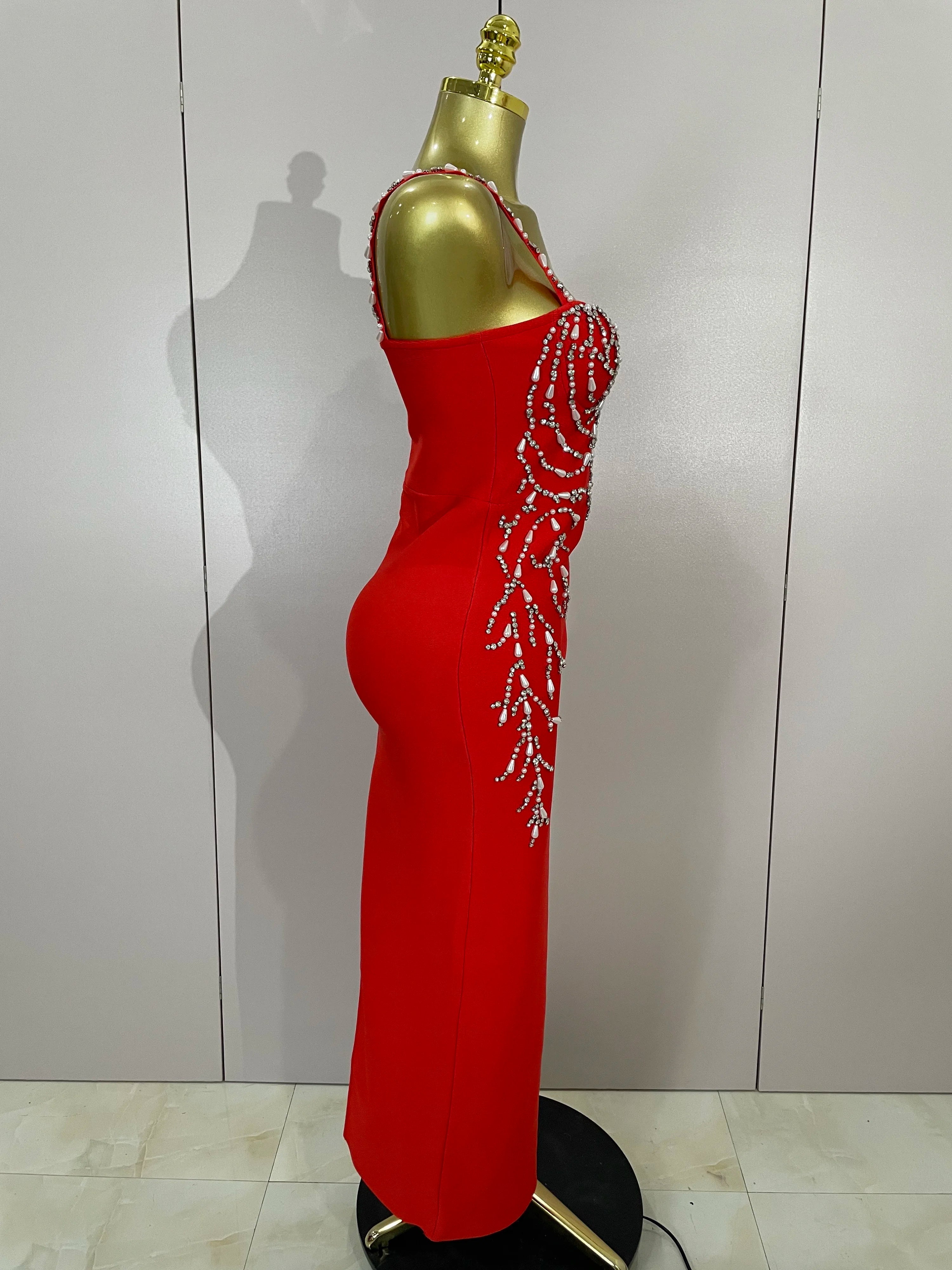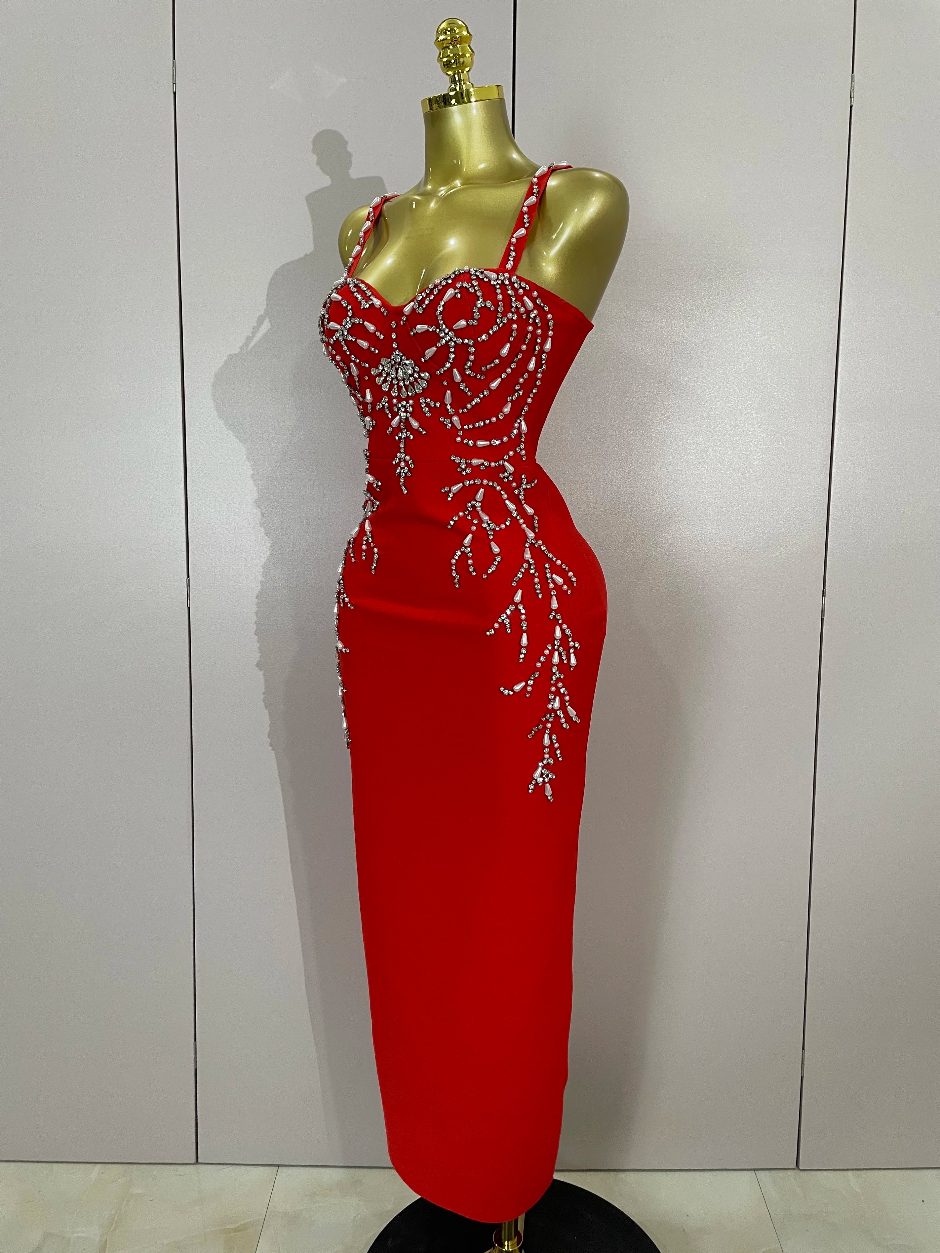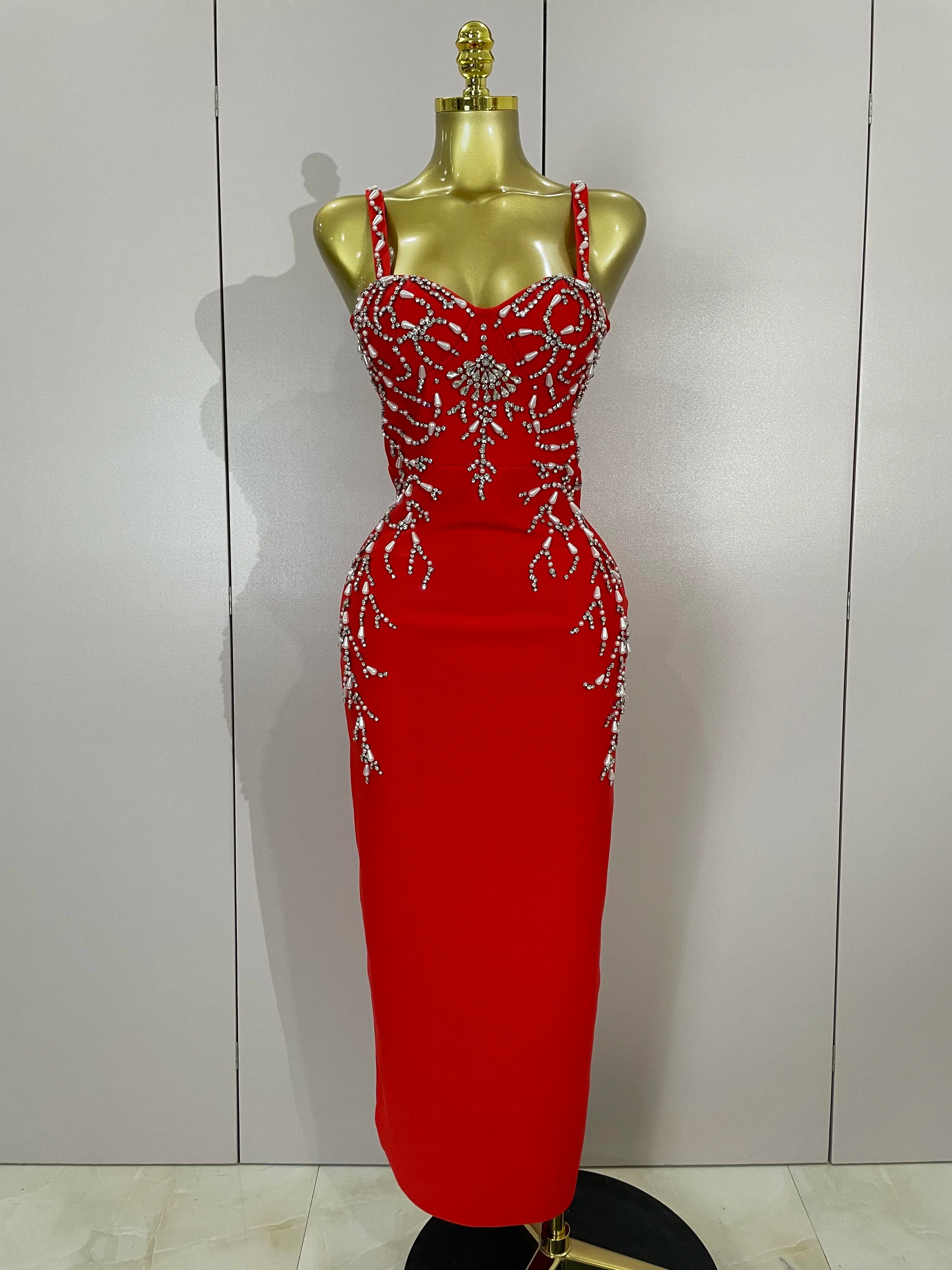 Turn heads in the Tahlia sexy backless red beading long bodycon bandage dress. Featuring intricate bead embellishments, a sultry backless design, and a sleek slim fit, this gown is perfect for evening parties, galas, and special events. Designed to accentuate your curves while keeping an elegant edge.