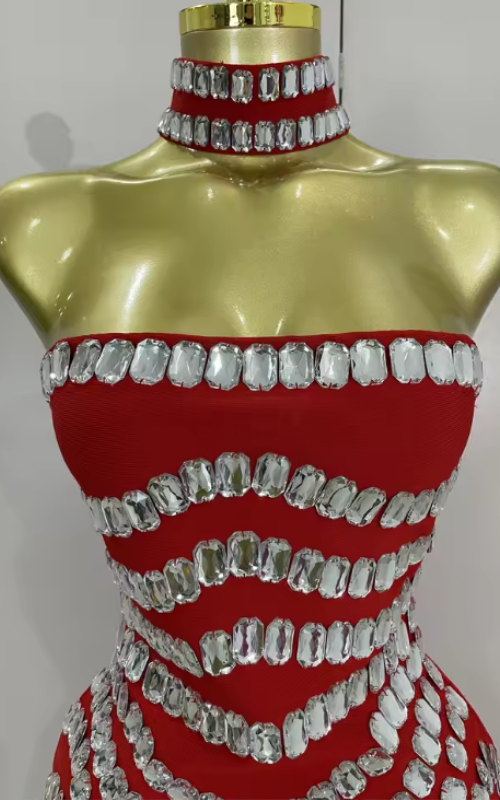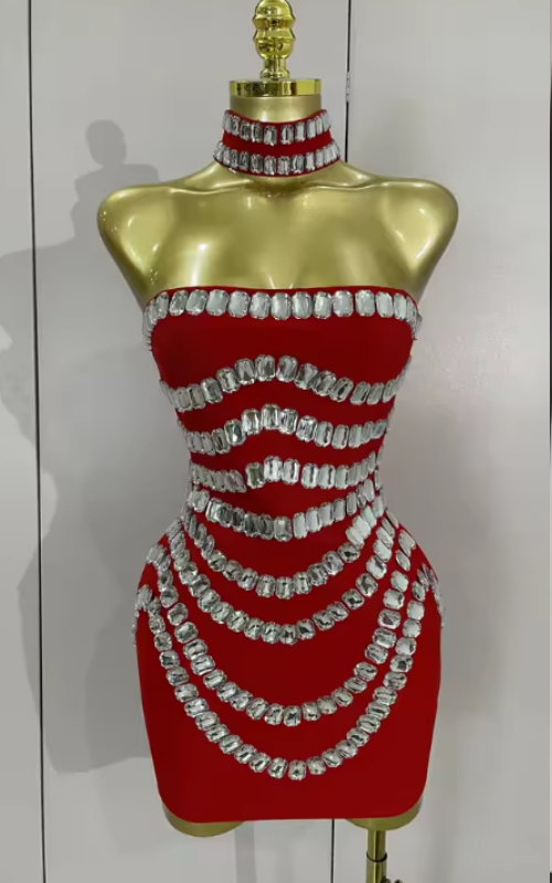 Shine with confidence in the Tasha Sparkly Rhinestone Strapless Mini Bandage Dress. This glamorous design features a curve-hugging bodycon fit, shimmering rhinestones, and a chic backless detail. Perfect for luxury birthday parties, evening celebrations, and club nights, Tasha delivers elegance and bold sparkle in one unforgettable look.