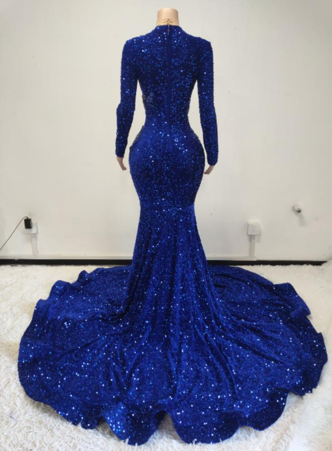 Vallen is elegance with edge. This Royal Blue Long Sleeve Sequined Prom Dress features all-over shimmering sequins and sleek long sleeves that balance bold sparkle with refined structure. The rich royal blue tone commands attention, making it perfect for prom night, formal events, galas, and evenings where confidence is non-negotiable.