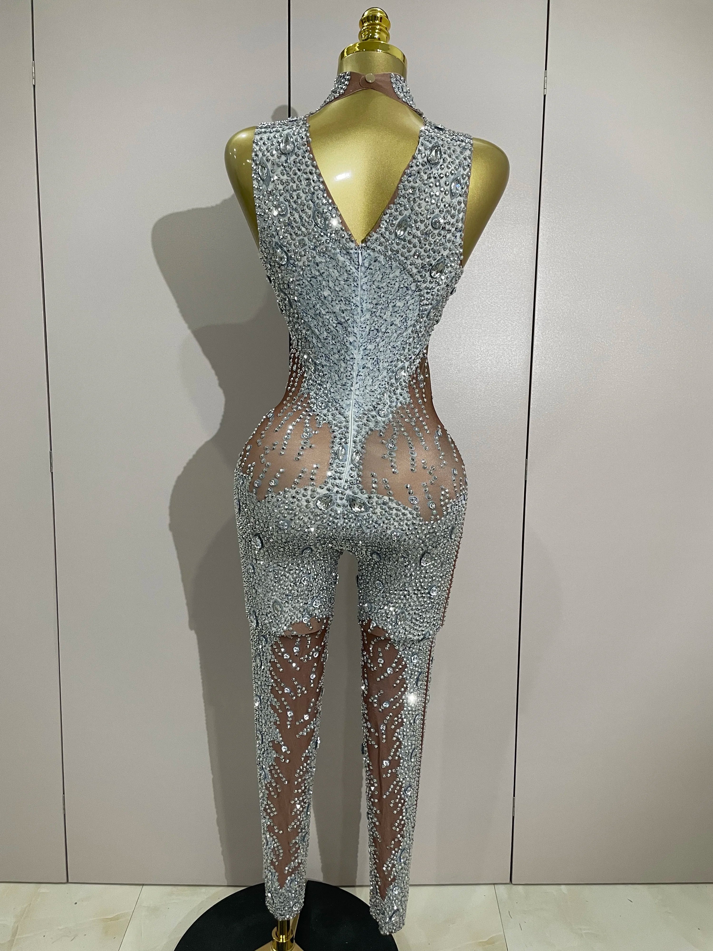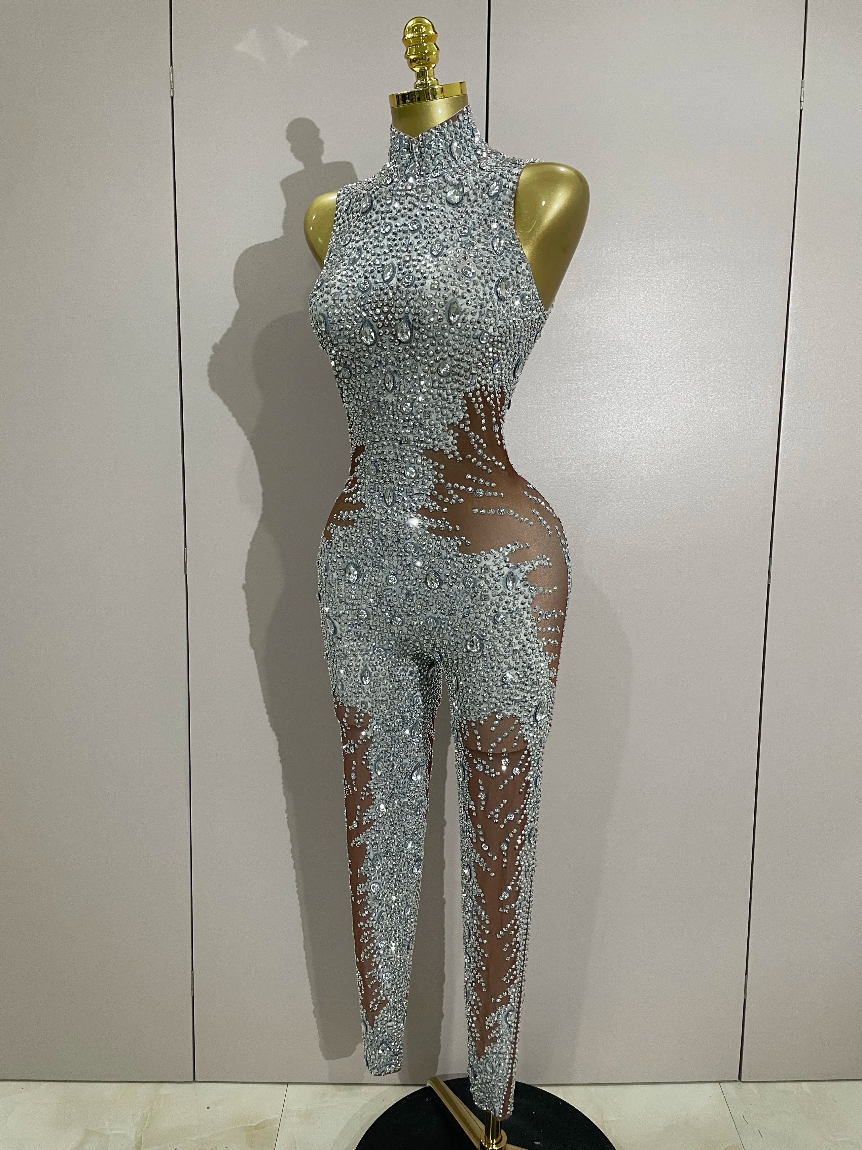 Step into the spotlight with this Luxury Sleeveless Rhinestone Bodycon Jumpsuit. Designed to shimmer with every move, it hugs your curves in all the right places. Perfect for birthdays, performances, or nights when you want all eyes on you. The sparkling rhinestones and sleek silhouette scream confidence, class, and pure star power.