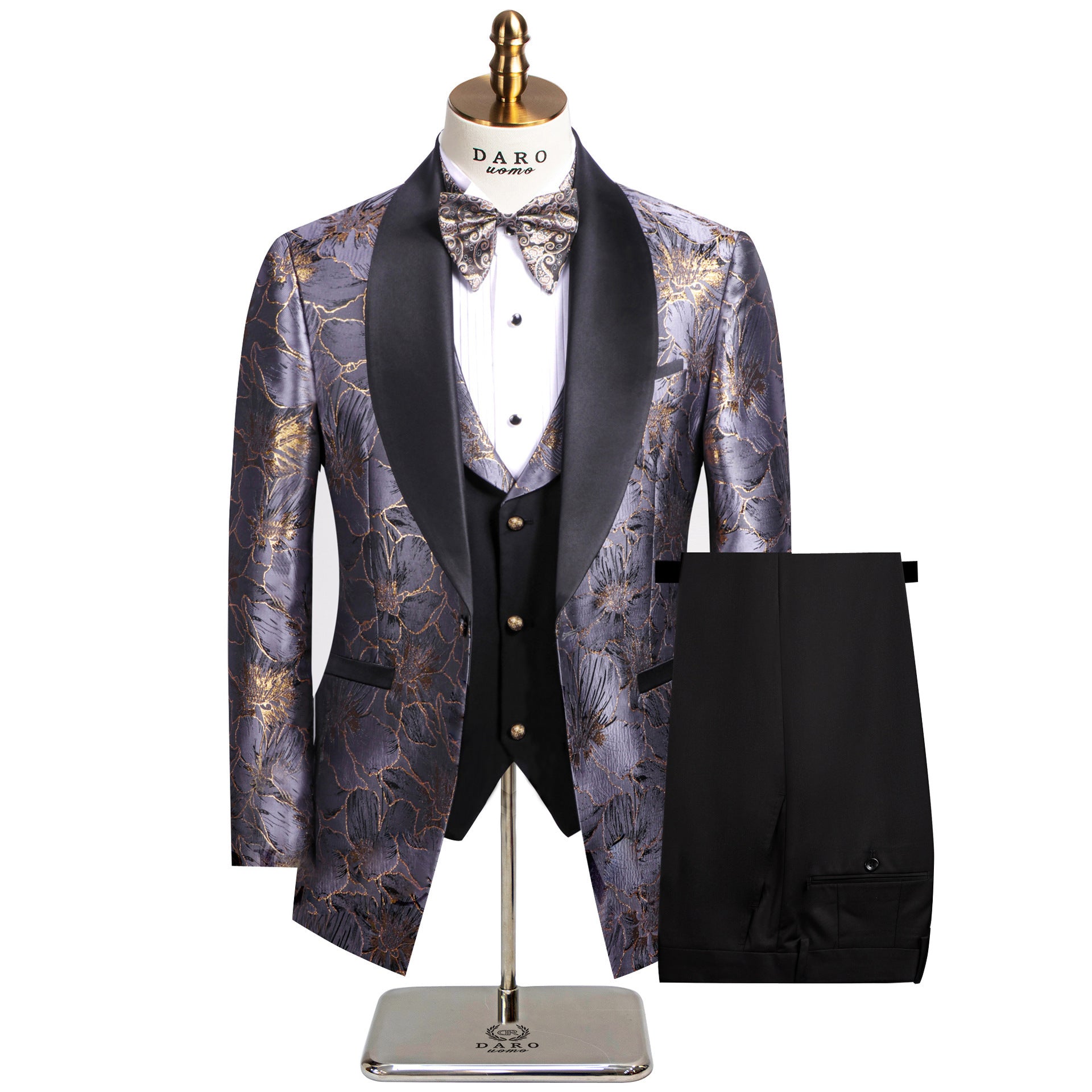 Luxury men’s woven pattern 3-piece formal suit with blazer, vest, and trousers for weddings or events